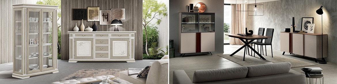 MÖBEL Vitrine 2 Türen mit Regalen 2 Schubladen + Türen Seitenscheiben aus Glas und Agglomerat Finish Nussbaum hervorragende Bildqualität handwerkliche 20/25 Tage Lieferlieferzeiten in ganz Italien MASSE L 105 H 184 P 40