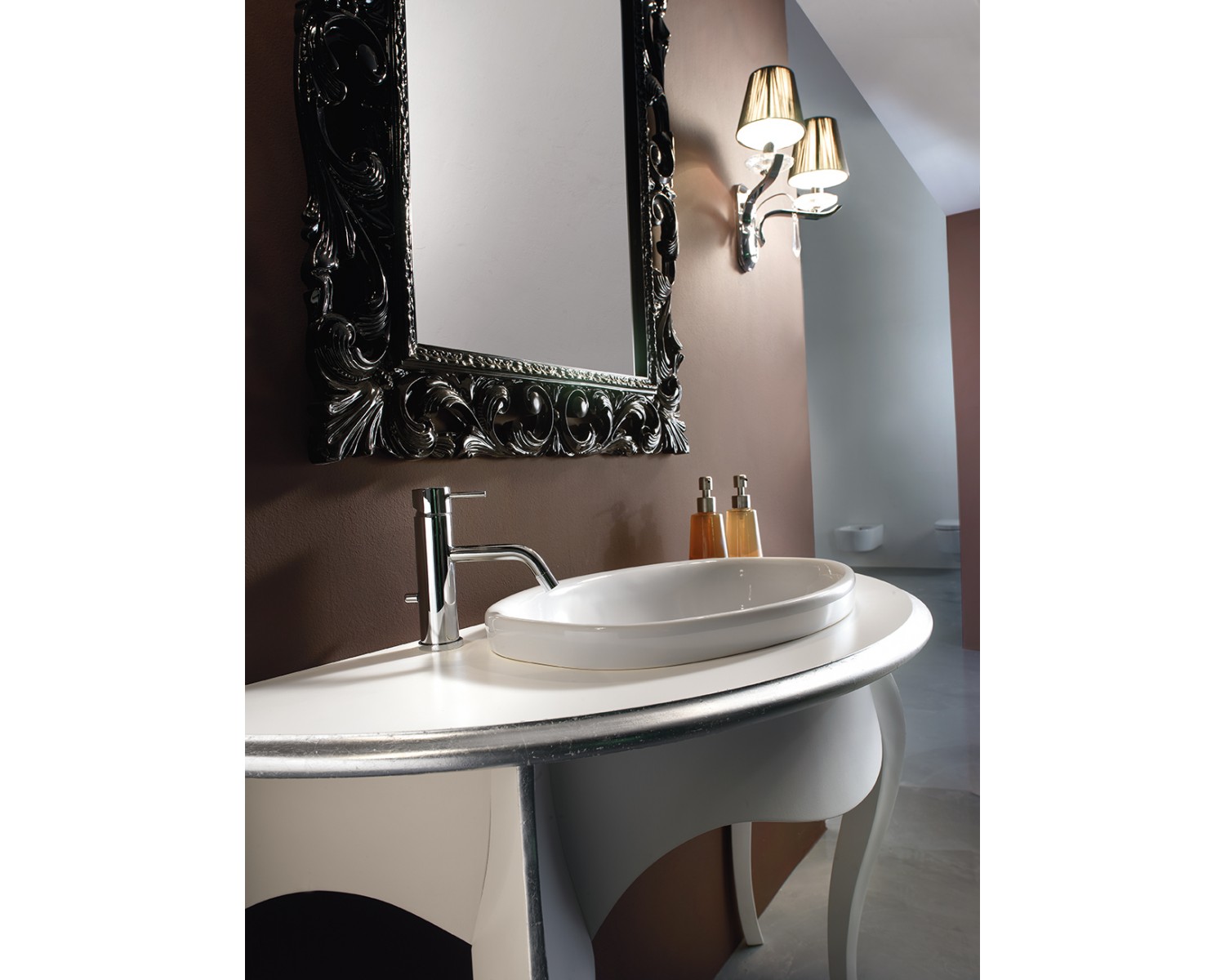 Elegante BADMÖBEL bemaltes Holz ZWEI TON Schwarz und Silber BLATT ALS FOTO.