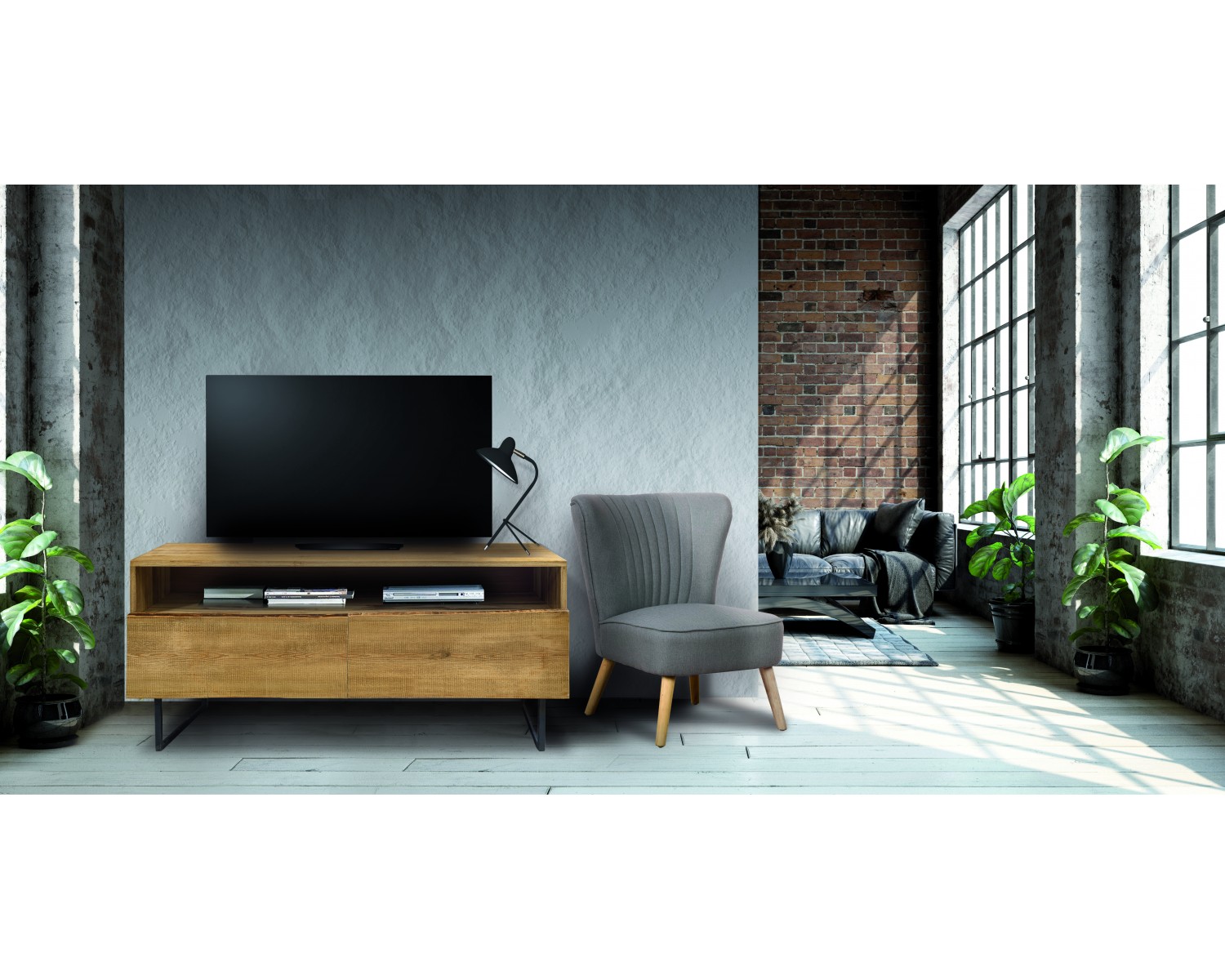 PORTATV FRASSINO T. NATURALE, 2C GAMBE FERRO ANTRACITE140x43x66