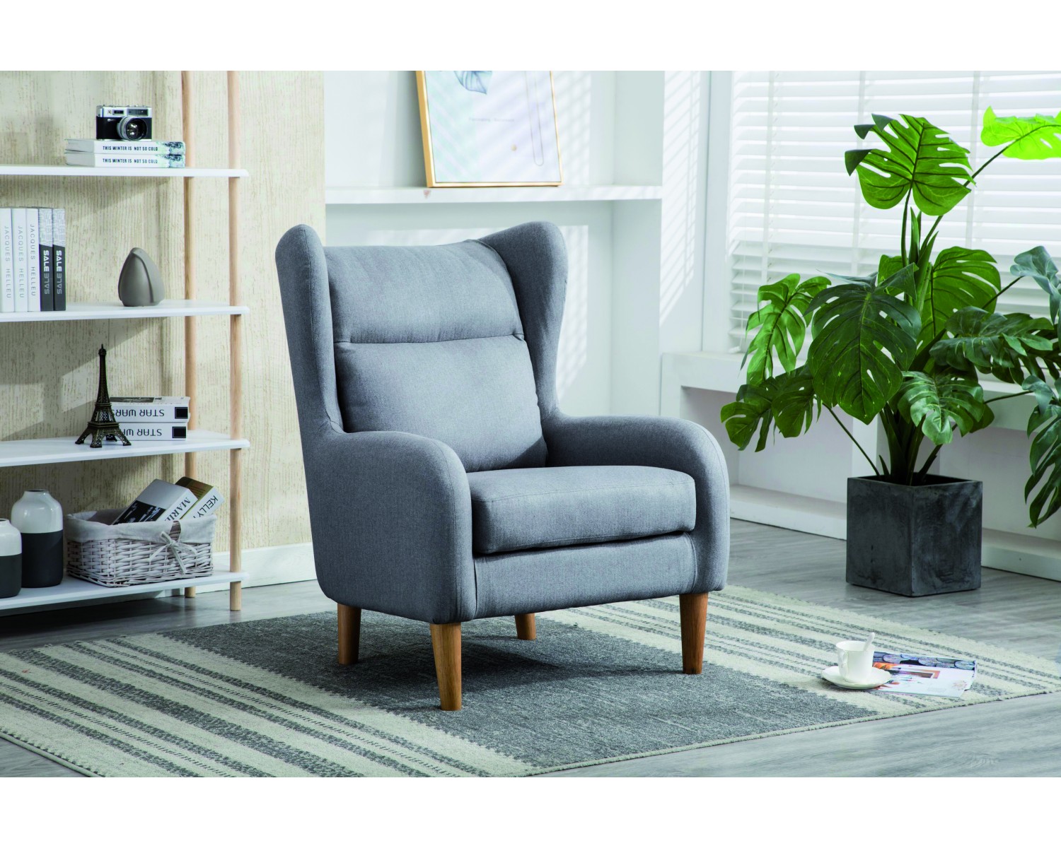 POLTRONCINA TESSUTO GRIGIO SCURO GAMBE NATURALI79x90x100