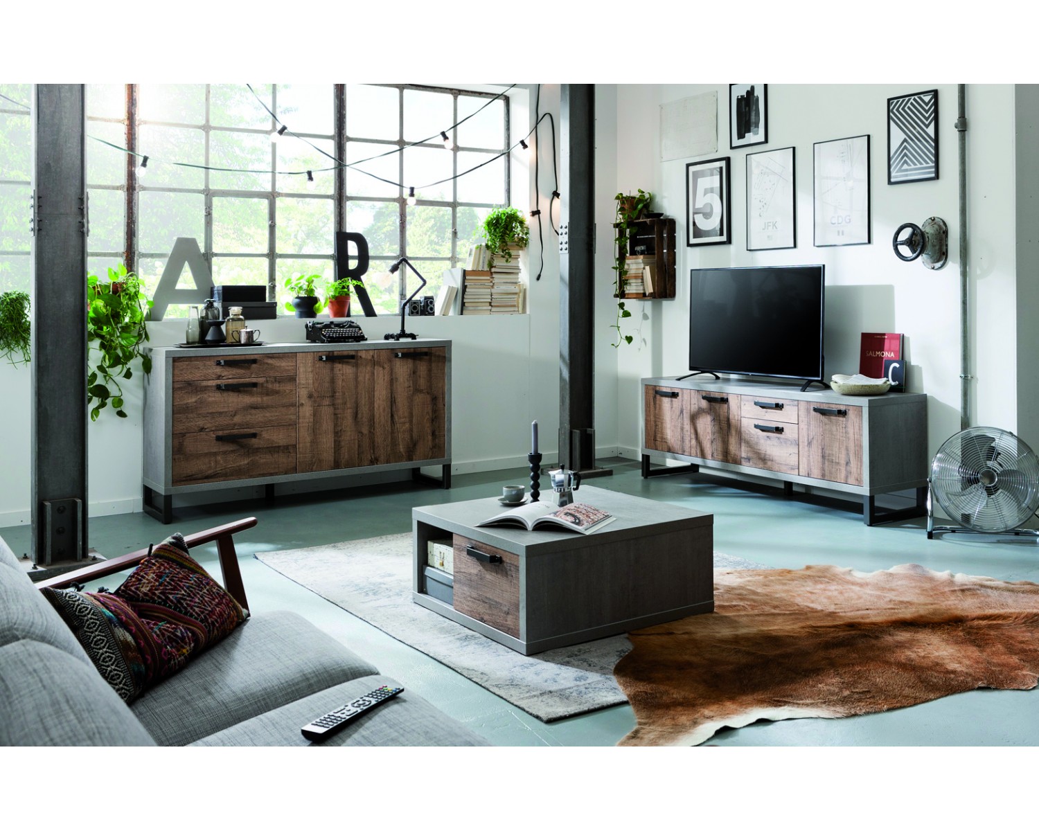 TAVOLINO QUADRATO BASSO 1C 1 VANO CEMEBNTO E ROVERE