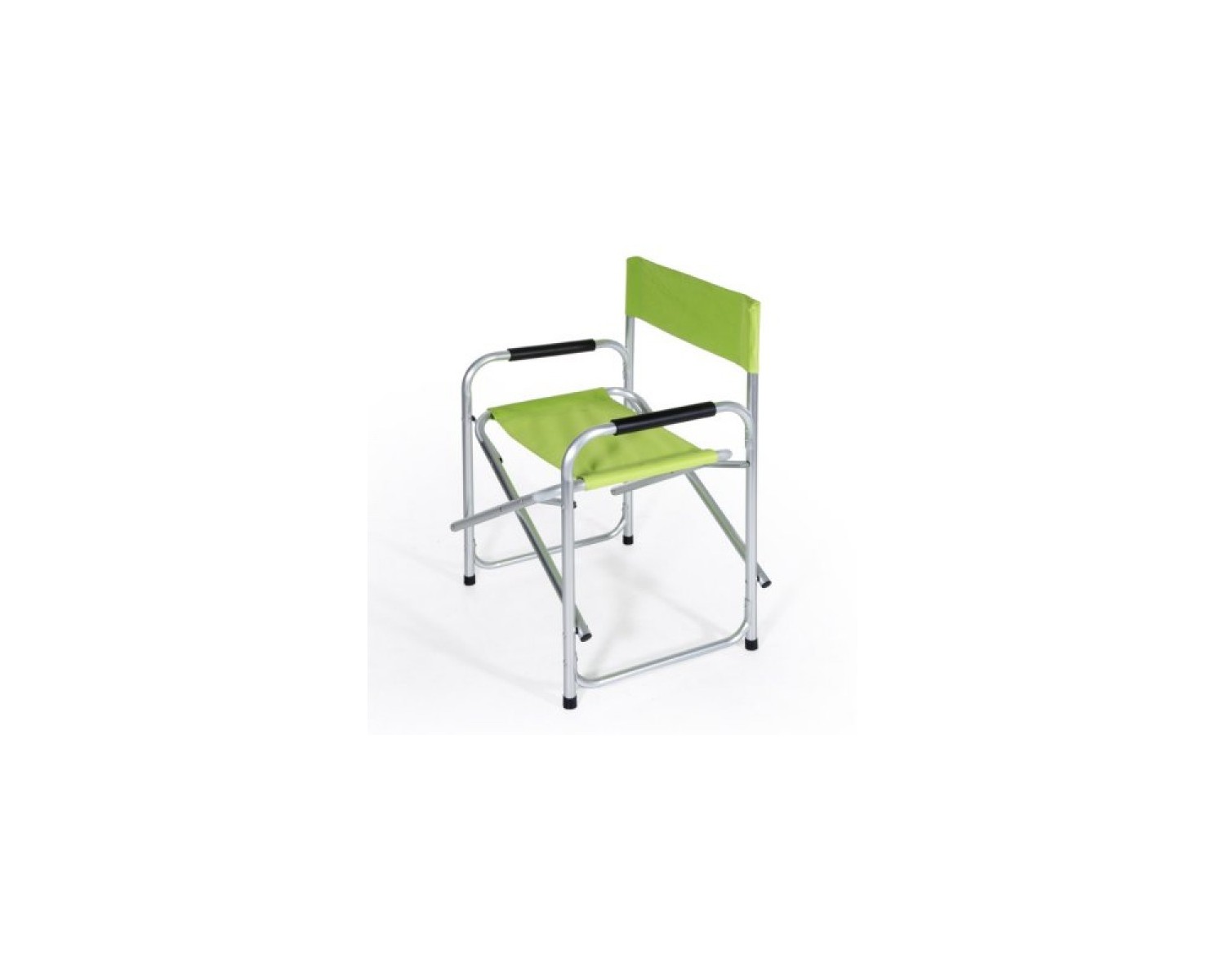 Sedia modello regista con telaio in tubo di alluminio 24 mm. Seduta e schienale in poliestere 600D. Adatta sia in esterno che interno, lavabile con acqua e sapone. Disponibile in tre varianti colore: avorio, verde e blu. Dimensioni: 47x57 cm - H. 78 cm. Portata massima 110 Kg.