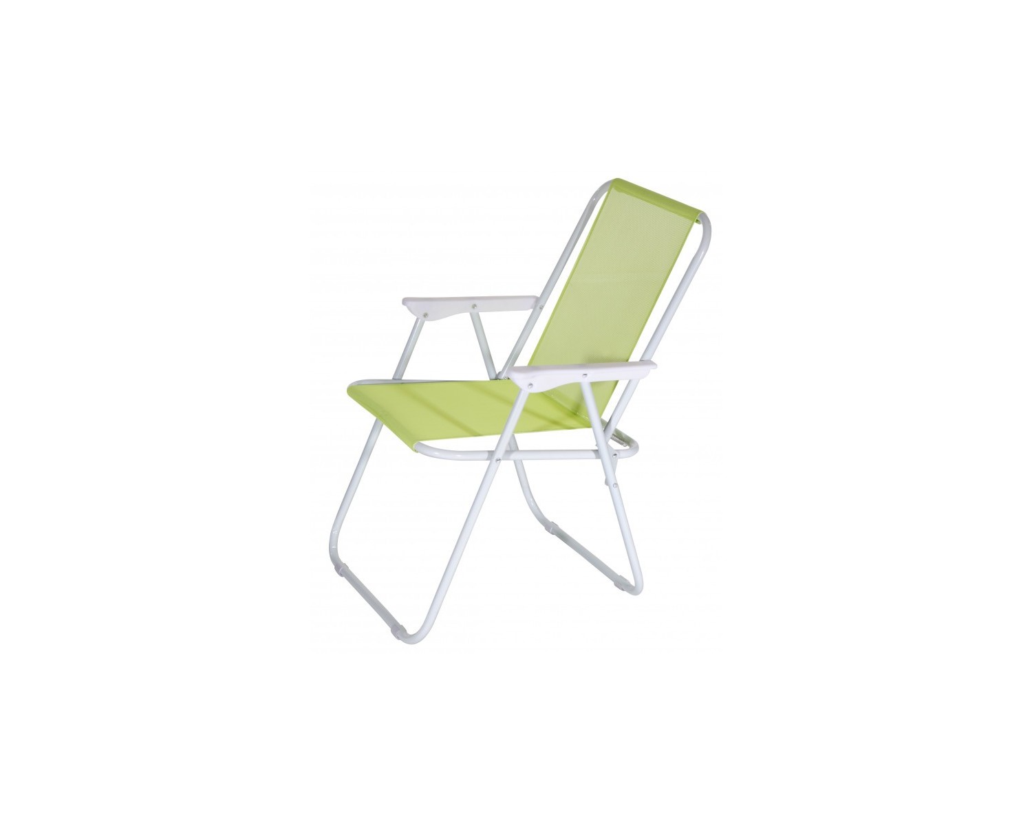 Sedia pieghevole con struttura in tubo di acciaio verniciato 18 mm. Seduta e schienale in textilene 1x1. Poggia braccio in plastica. Disponibile in 3 varianti colore bianco/blu, verde e aranzione . Dimensioni: 54x44 cm - H. 75 cm. Portata massima 110 Kg.