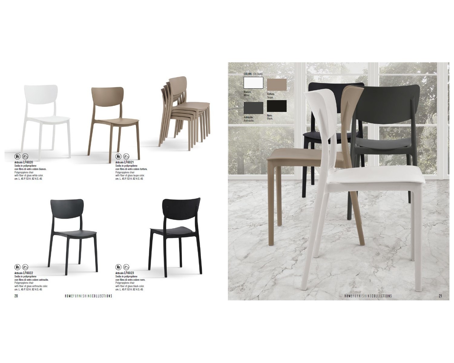 Sedia Polipropilene con fibra di vetro tortora L.45 H.82 P.53 HS.45