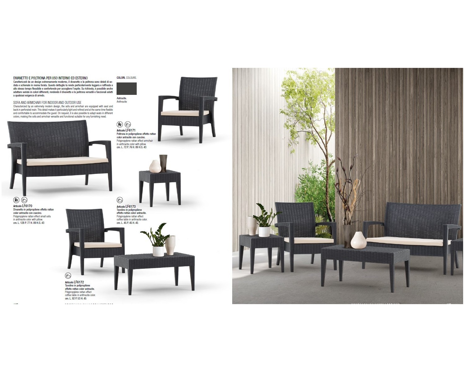 Divanetto Polipropilene effetto rattan color antracite L.128 H.89 P.77 HS.43 completo di cuscino