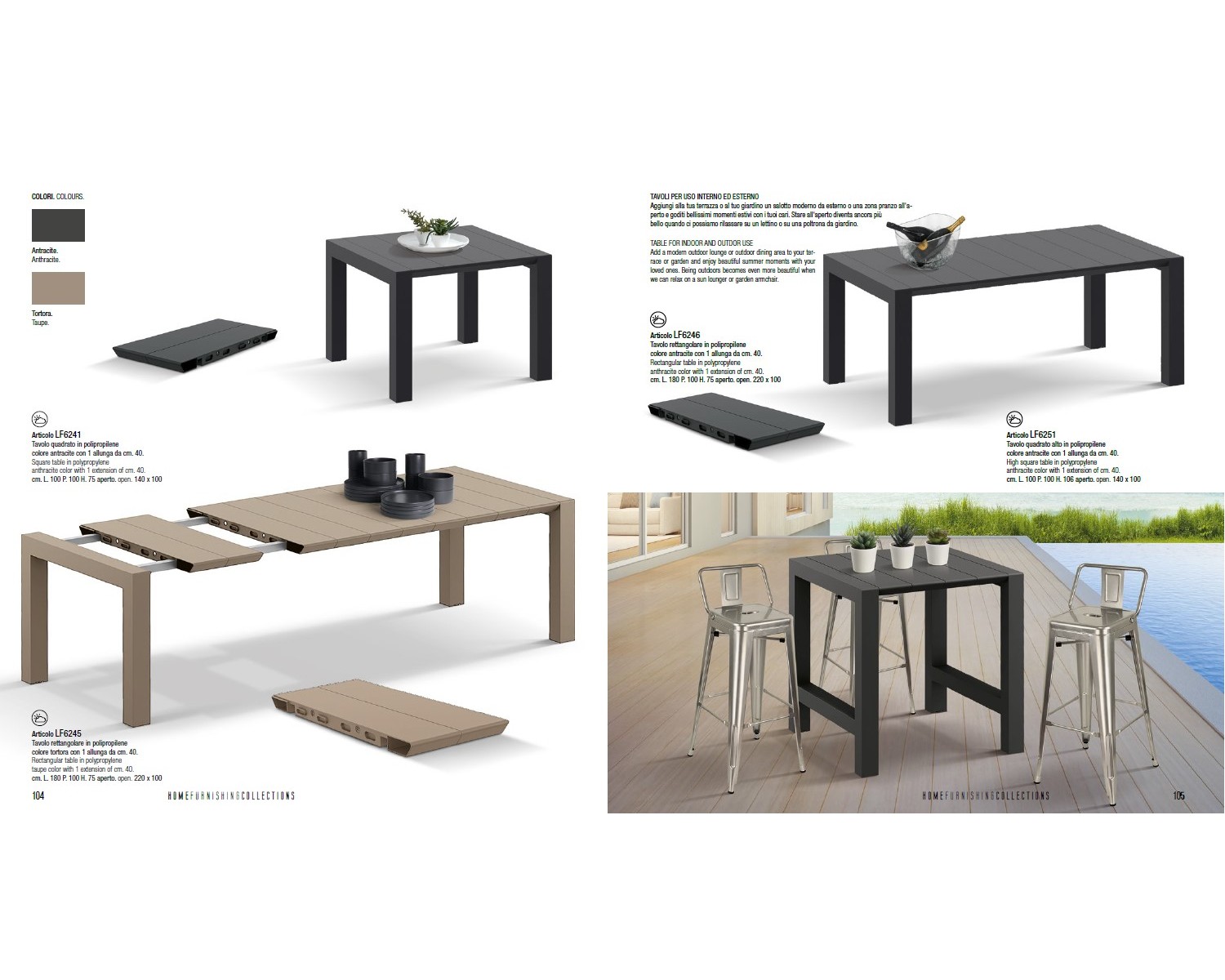 Tavolo in polipropilene color Antracite 100x100 H.75 cm. con 1 allunga da cm.40