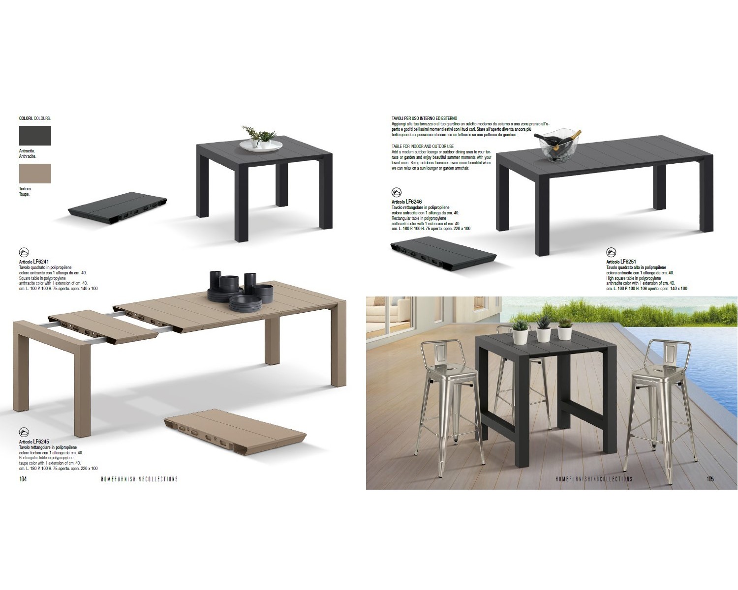 Tavolo in polipropilene color tortora 180x100 H.75 cm. con 1 allunga da cm.40