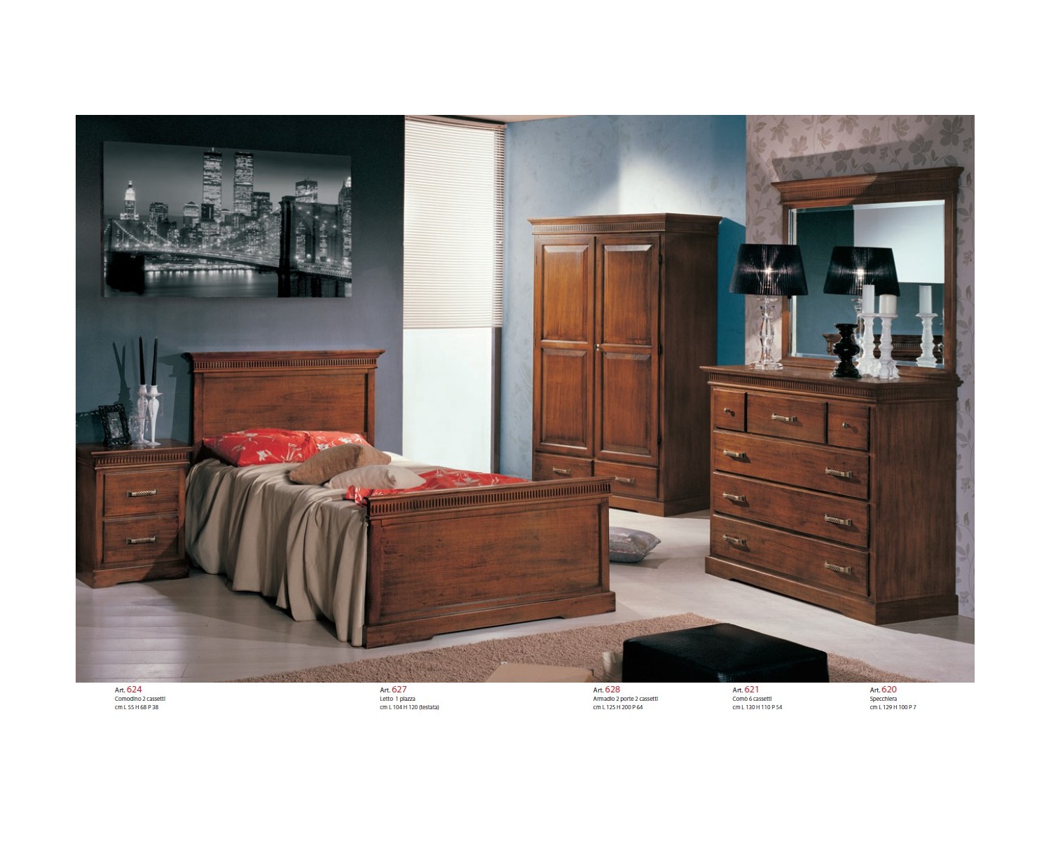 SINGLE Raum mit Einlage bestehend aus Bett 1 comodinio 1 Nachtstuhl Spiegelschranktüren 2 Schubladen 2 Türen in schlechter Kunstfarbe Massivnußholz Schnitzkunst ausgezeichnete Qualität Lieferung 20/25 dd Sendung in allen Stücken auch Italiadisponibili singoliDIMENSIONIarmadio L 125 H 200 P 64BETT 104 xh getestet 120como6 Schubladen L 130 P 54 h 13 & amp