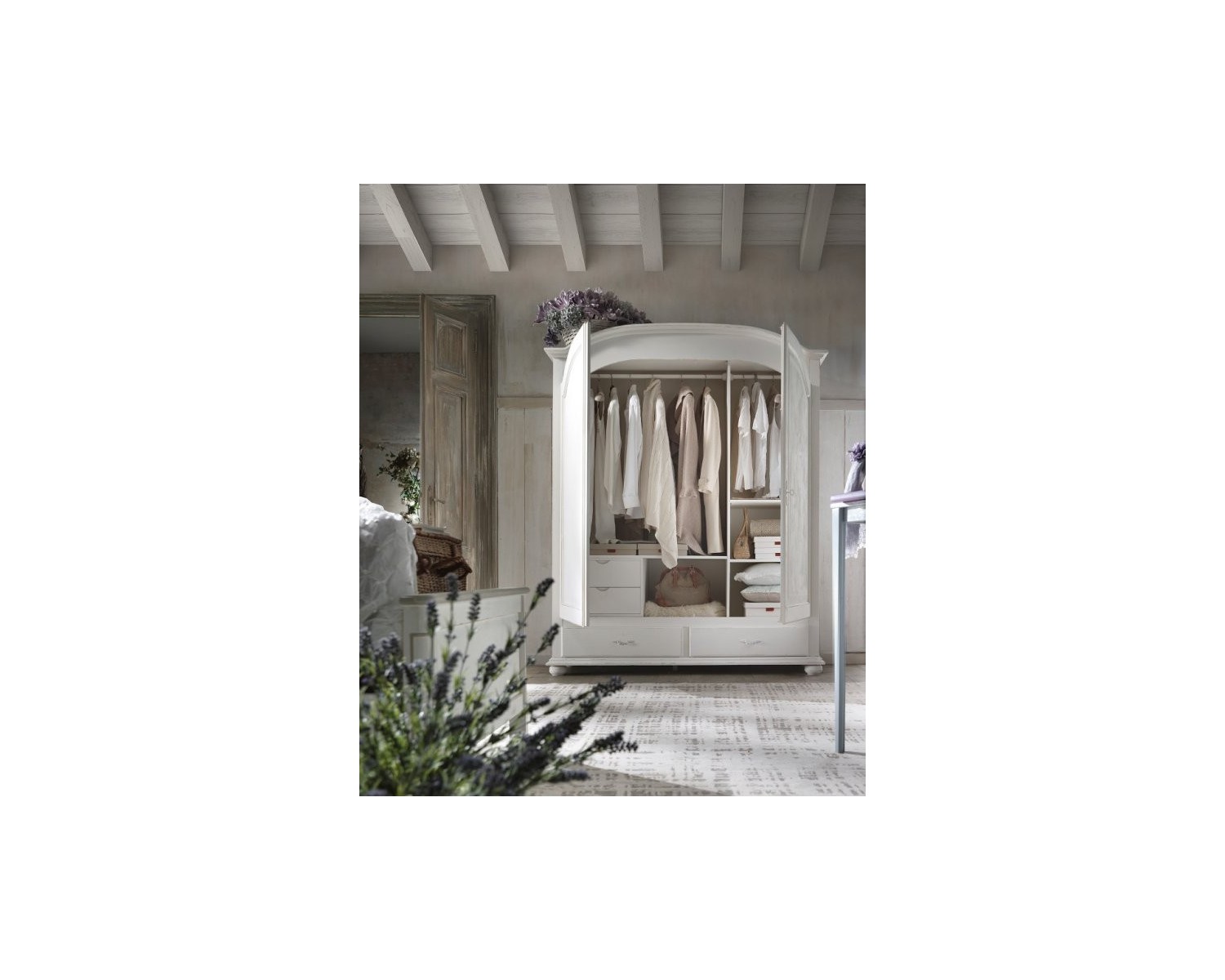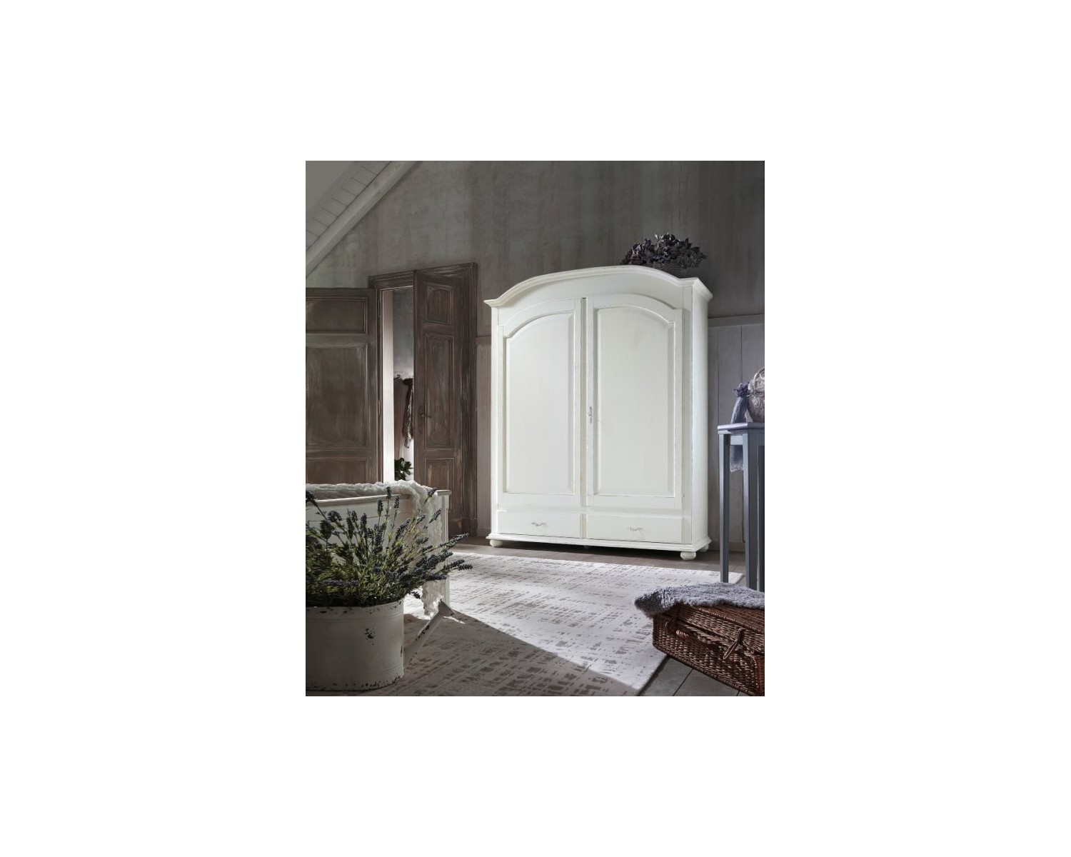 Elegante Schrank 2 Flügeltüren 2 Holzschubladen MASSIVHOLZ weiß Antik-Finish - in verschiedenen Farben hergestellt werden -
