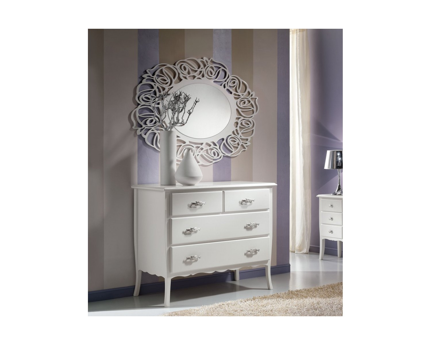 Eine elegante Kommode mit vier Schubladen in fester weiß lackiert. Ausgezeichnete Venetian Qualität, handwerkliches Können, Lieferzeit 15/20 Tage in ganz Italien Versand MASSE L 112 P 53 H 91