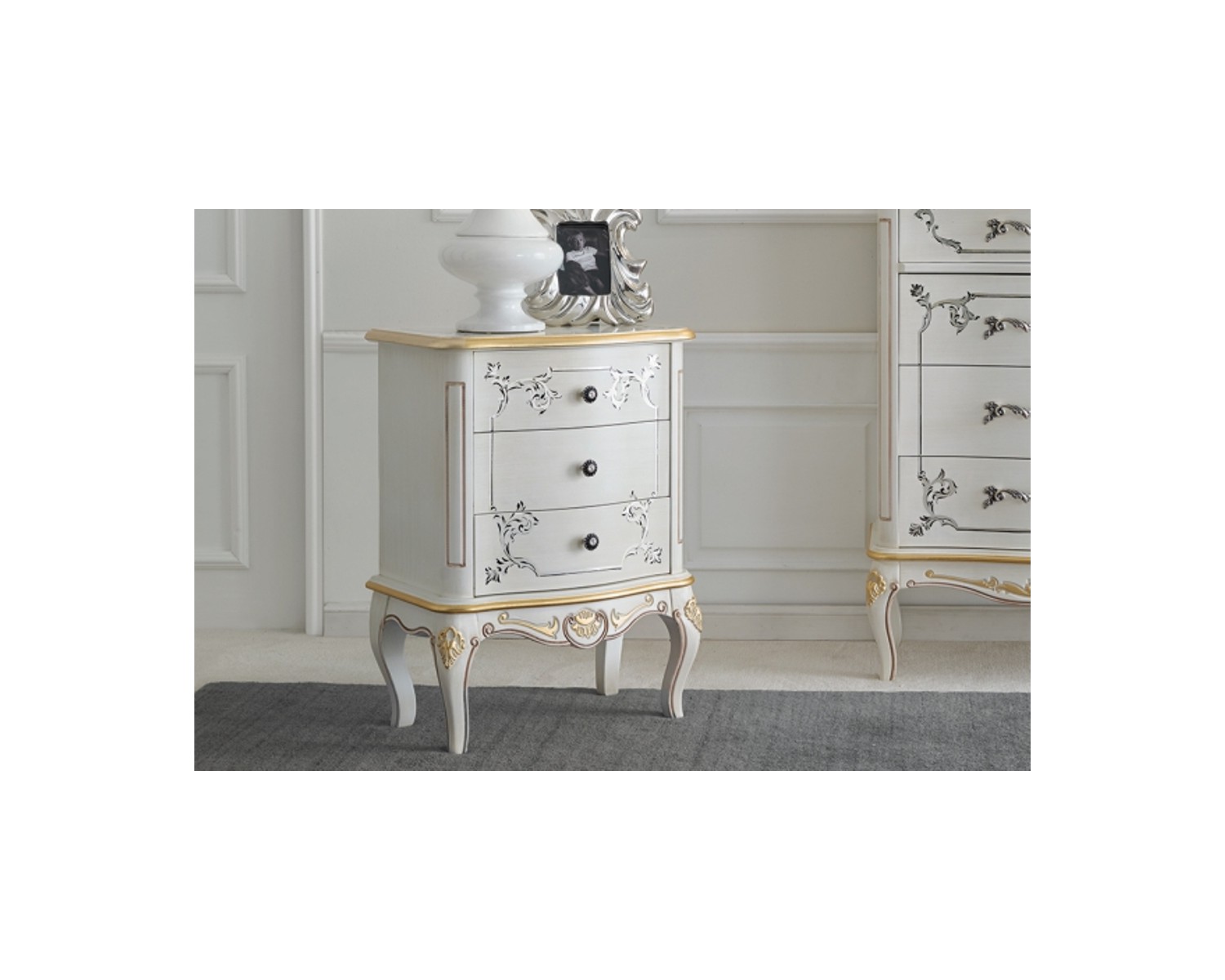 NIGHT TISCH 3 FACH HOLZ INLAY MIT MATT WEISS