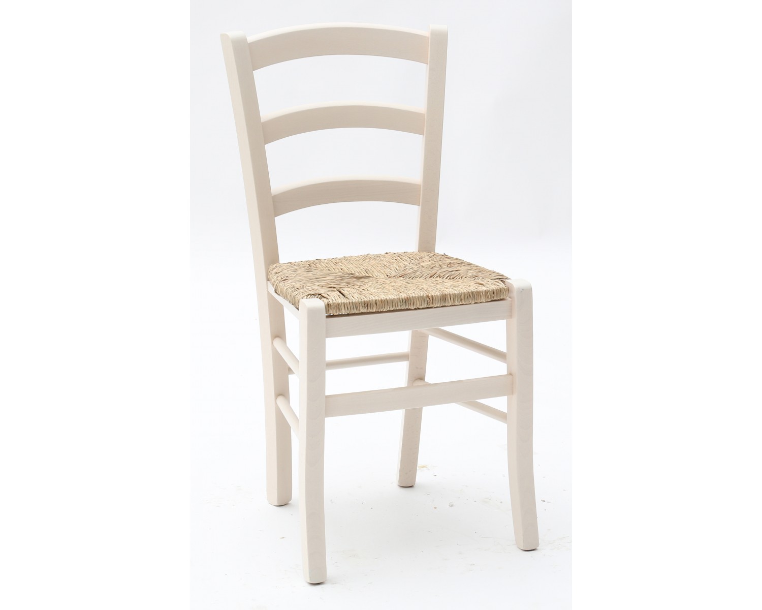 Sedia con fondino paglia, Anilina Bianco L.43 H.88 P.42 HS.47