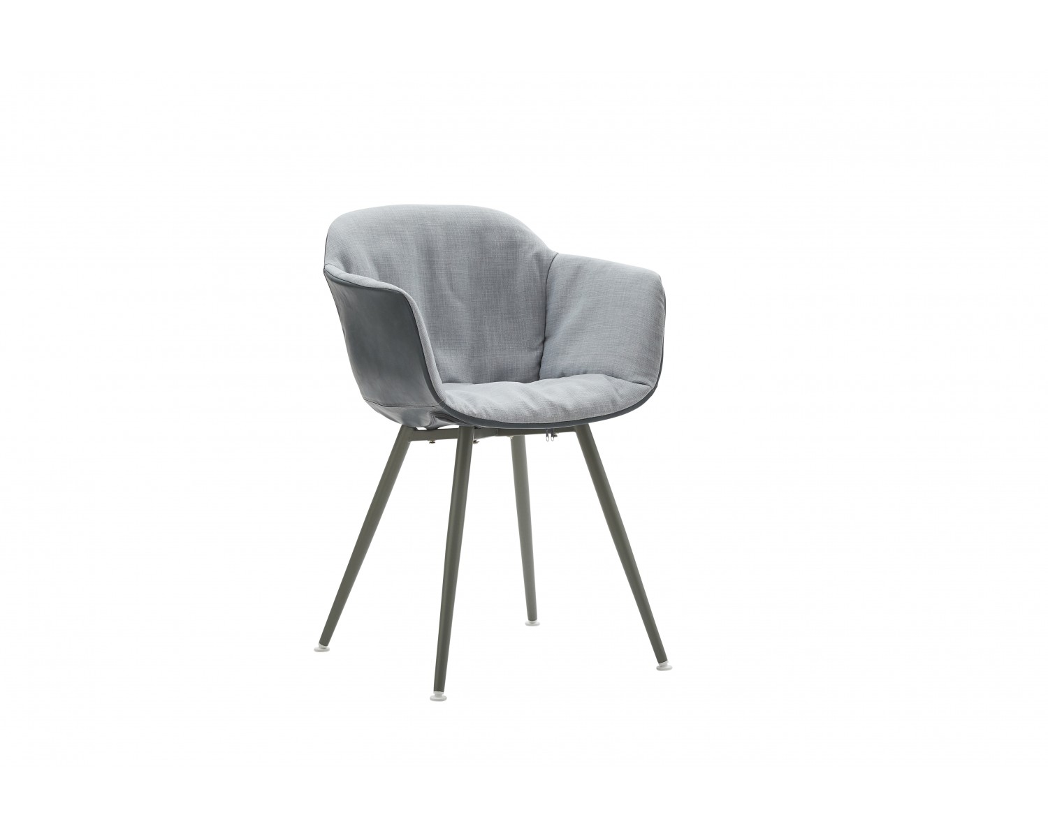 Sedia Tessuto Azzurro con rivestimento esterno Ecopelle Grigio L.57 H.83 P.50 HS.46