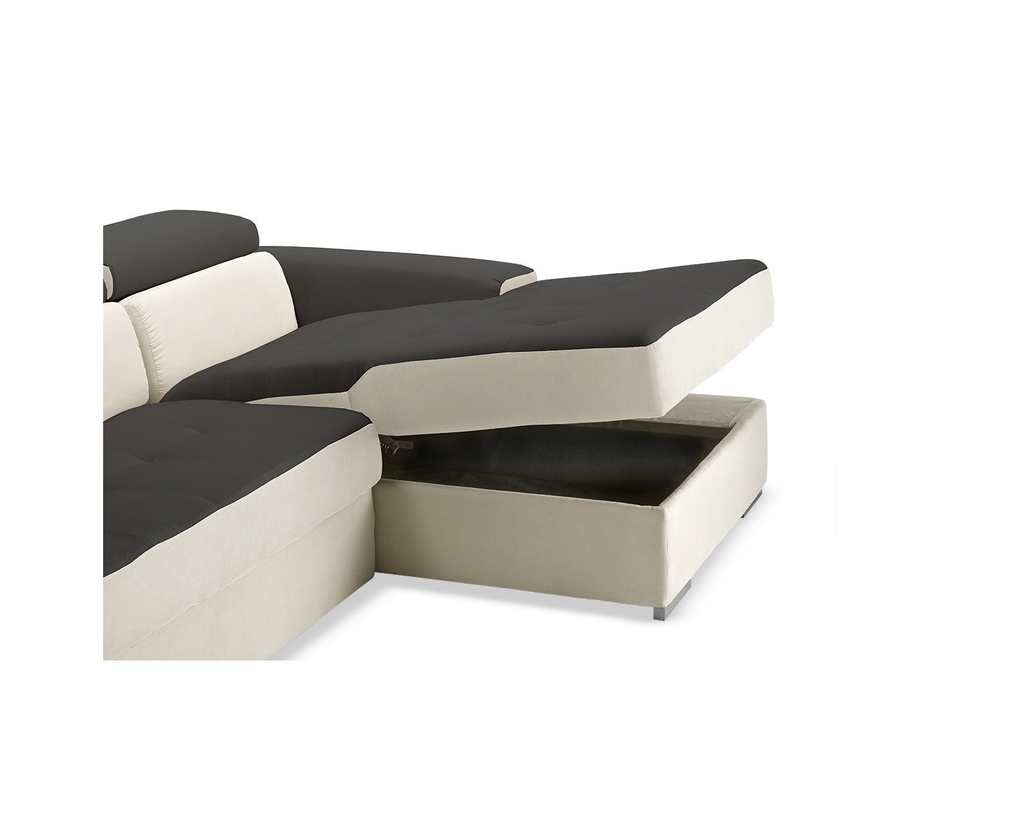 DIVANO CON PENISOLA CONTENITORE CON PANCHETTA L 270 P163 H 75-94 CM NON SFODERABILE - struttura: masselli portanti in abete - cuscini: in poliuretano espanso densita 28 kg - rivestimento: in tessuto a scelta- tempi di consegna: 45 giorni