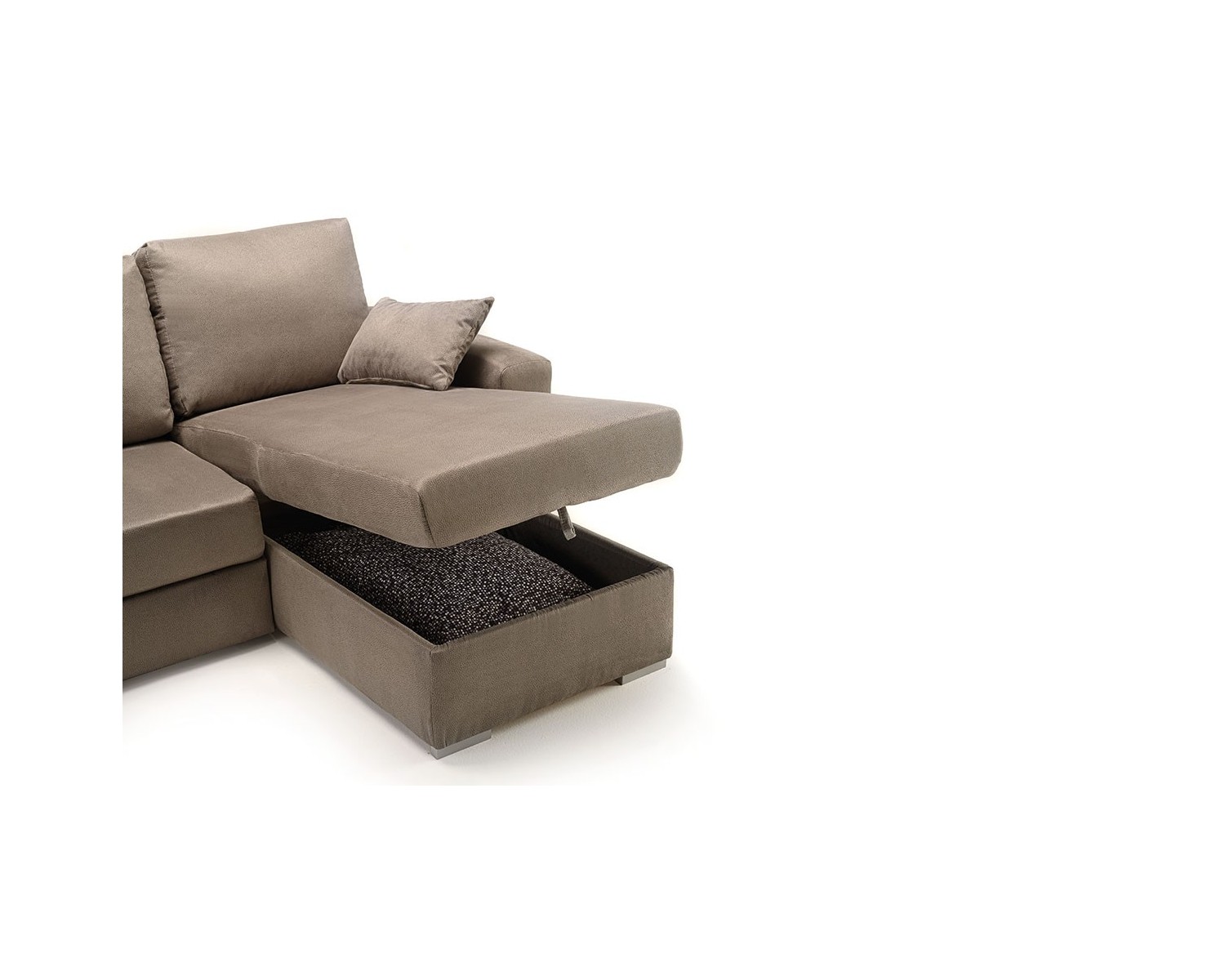 DIVANO CON PENISOLA CONTENITORE CON PANCHETTA L 225 P88-157 H 85CM NON SFODERABILE - struttura: masselli portanti in abete - cuscini: in poliuretano espanso densita 28 kg - rivestimento: in tessuto a scelta- tempi di consegna: 45 GIORNI