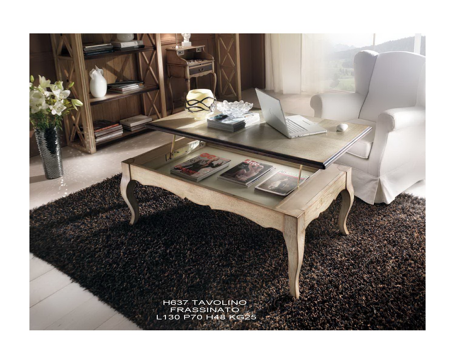TAVOLINO RETTANGOLARE FRASSINATO CON PIANO RIALZABILE L.130 H.48 P.70