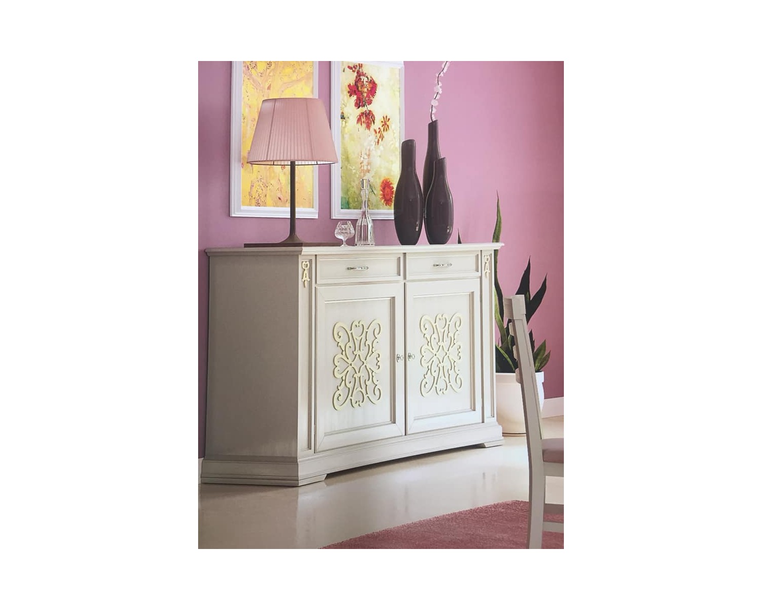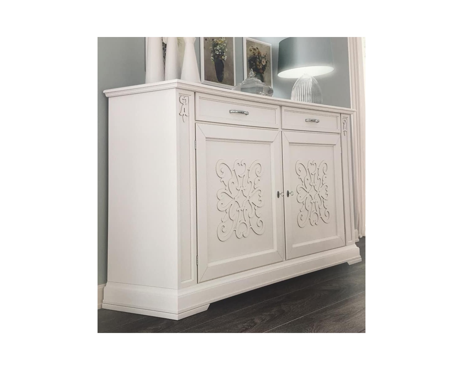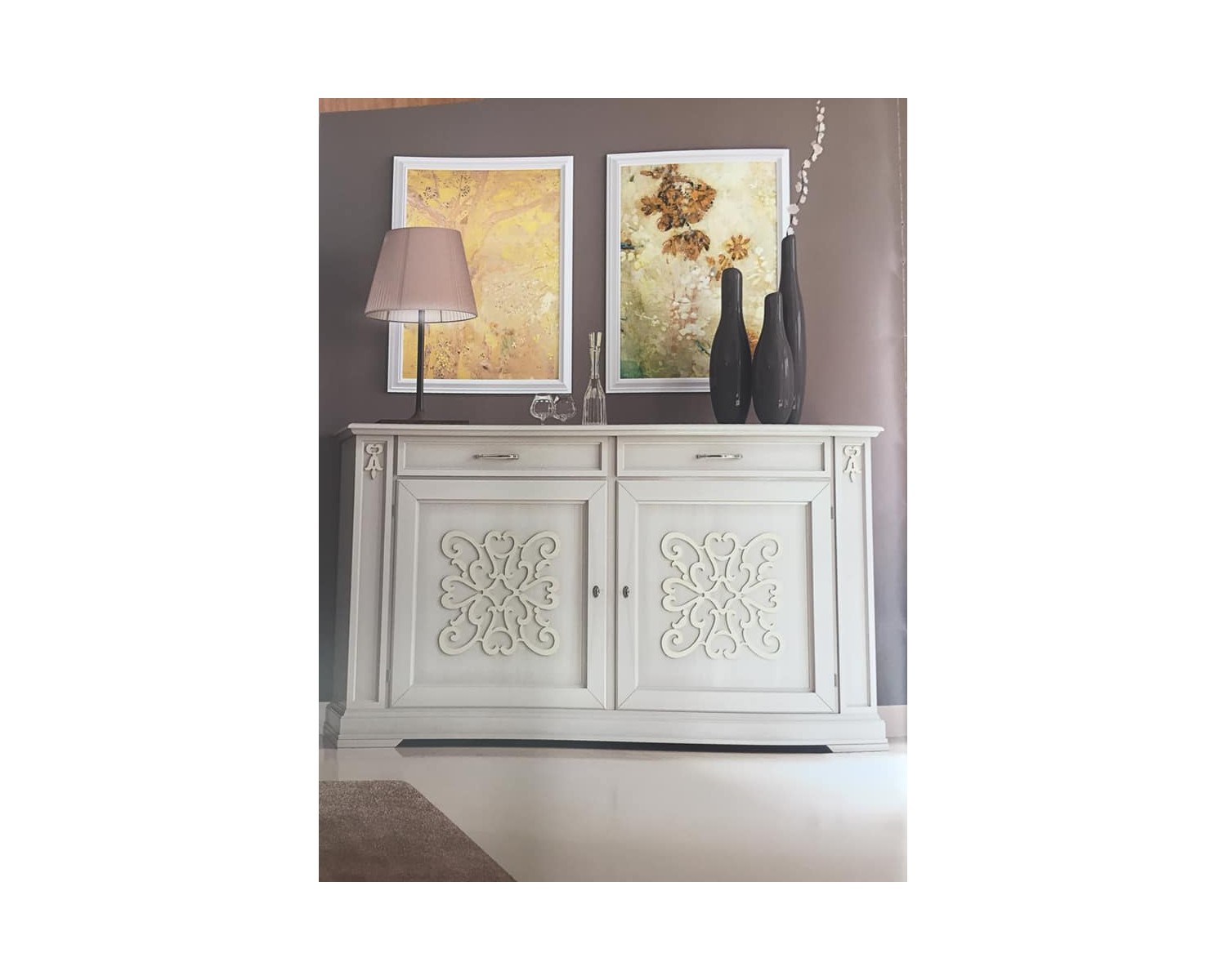 CREDENZA IN LEGNO MASSELLO CON RILIEVO L 184 P 50 H 106
