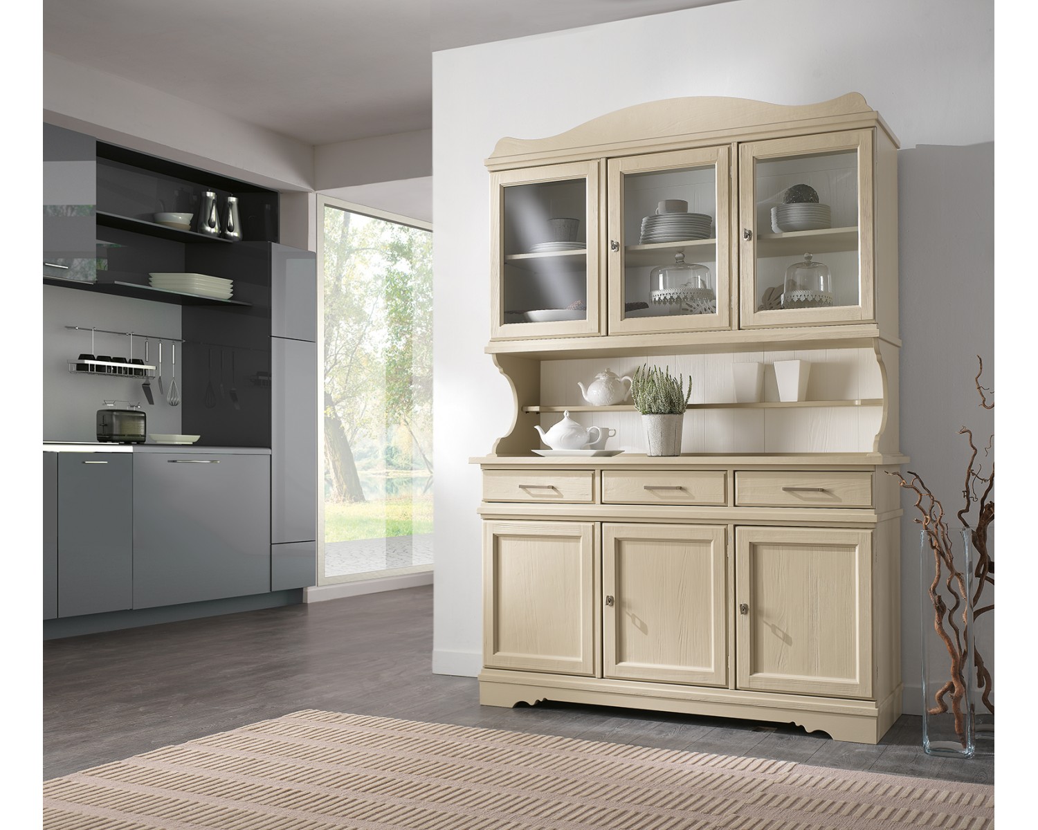 Schöner Glaube + LIFT SCHAU FULL Massivholz mit 3 Schubladen und 3 Türen + 3 LIFT Glastüren wissen Polier gebürstet-GRAIN lackiertes Holz ausgezeichnete Qualität Venetian artigianle Produktionstermine 15/20 gg.spedizione in ganz Italien Kann sich WEISS LACKIERTEM GEBÜRSTETEN ELFENBEIN LACKIERTE GEBÜRSTETEN TOBACCO LACKIERTE GEBÜRSTETEN GRAY LACKIERTE GEBÜRSTETEN andere RAL-Farben auf Anfrage MASSE L 155 P 94 H 52 ALZATA L 155 H 119 P 44 GESAMTHÖHE MÖBEL CM 213