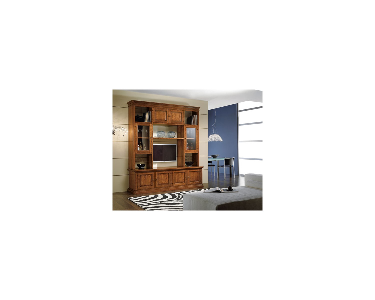 Sehr schöne Bibliothek Wand aus Massivholz und Spanplatten Farbe Nussbaum .ante Fach-TV mit Schubladen demontierbar Venetian ausgezeichneter Qualität steht rusticated, Lieferzeit 15/20 Tage Versand in ganz Italien MASSE L 210 H 240 P 60