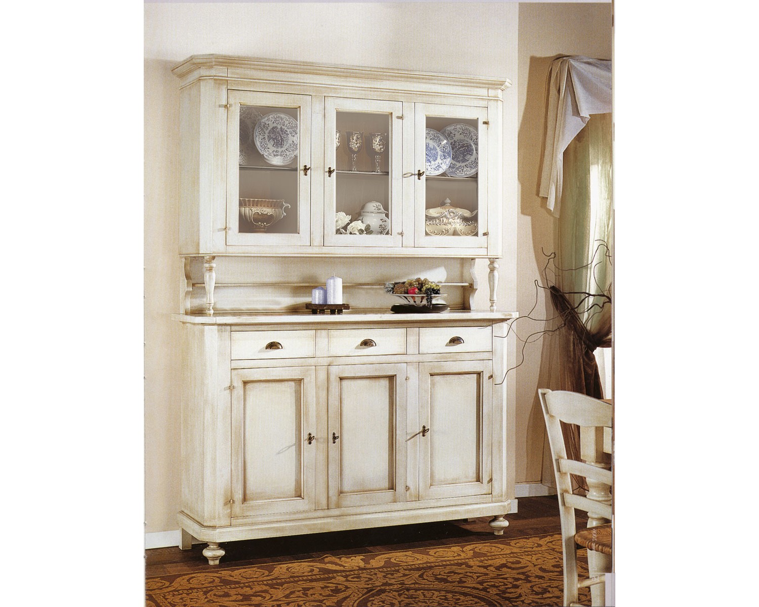 MÖBEL Basis Anrichte 3 Türen mit erhobenen 3 Glastüren und Massivholz Agglomerat Finish Elfenbein antiker venezianischen ausgezeichneter Qualität der Lieferung 20-25 Tagen Lieferzeit in ganz ItaliaCOLORI ANTIK WEISS ANTIQUE IVORY WEISS aufgelesen ELFENBEINaufgelesen MASSE L 158 H 213 P 47