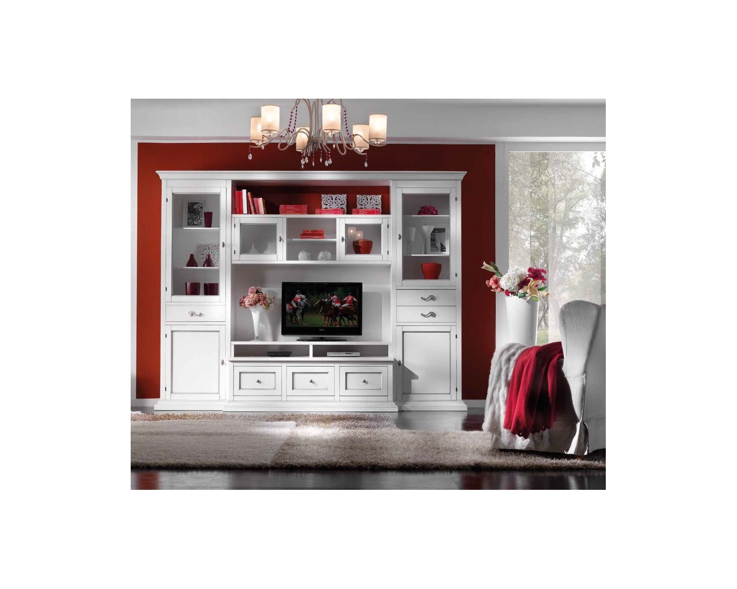 parete soggiorno porta tv IN LEGNO DI FRASSINO