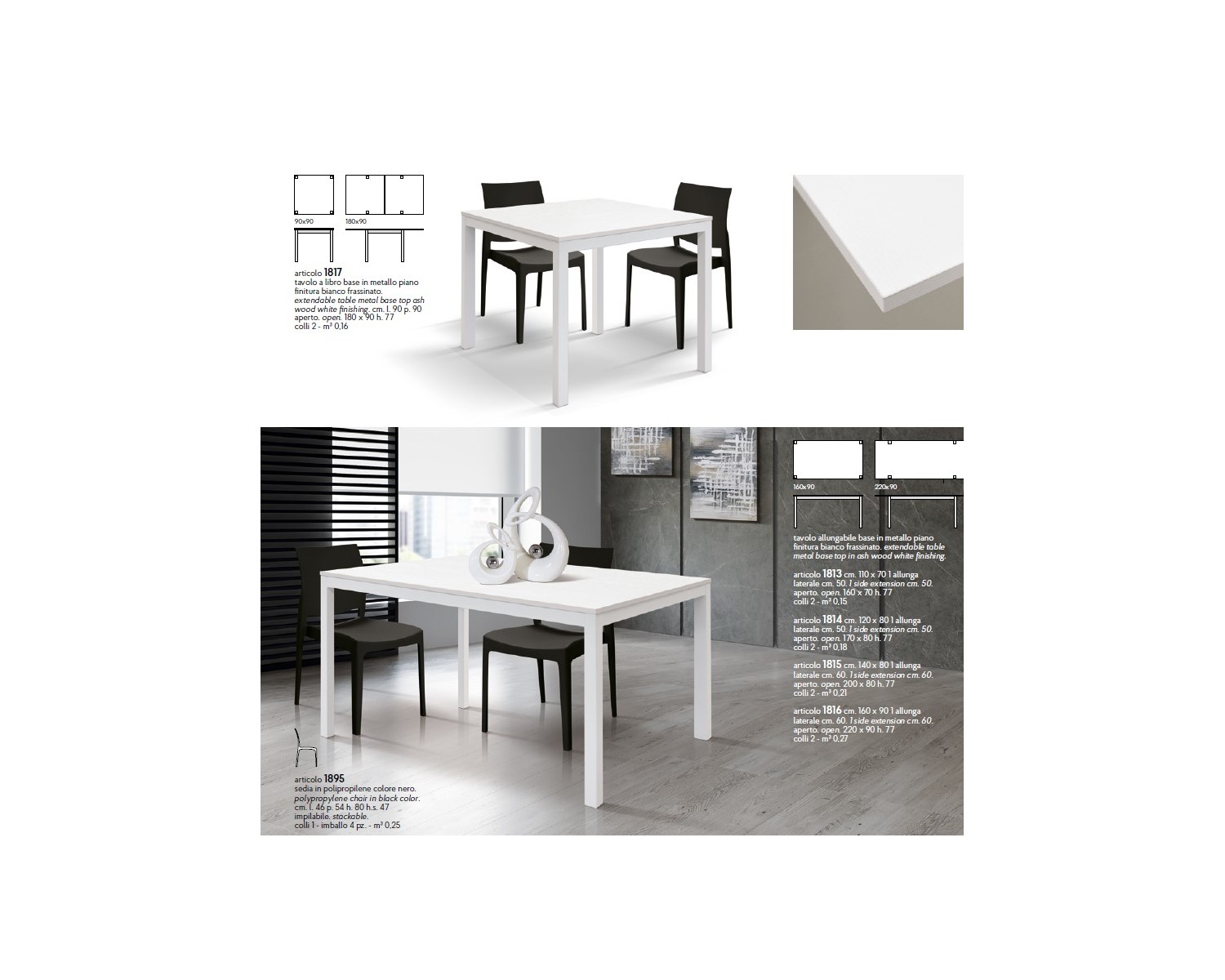 Tavolo a libro 90x90 base metallo piano finitura bianco frassinato