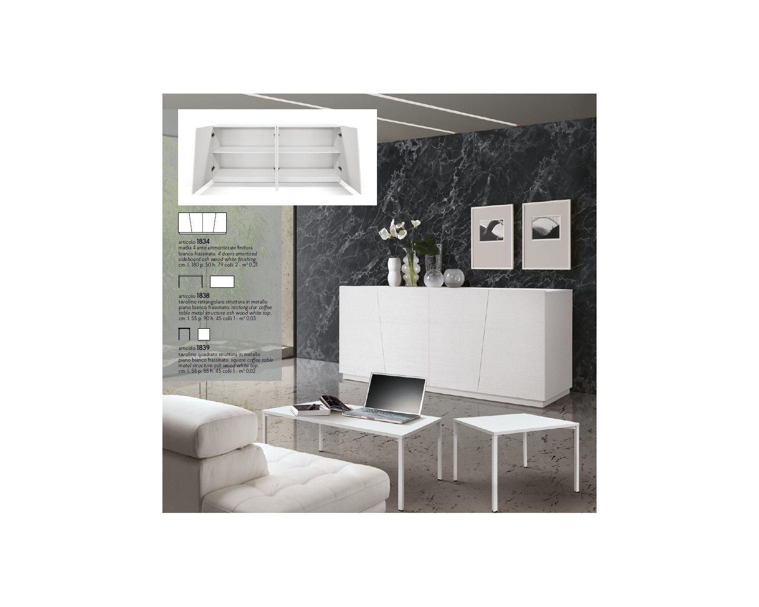 Tavolino rettangolare 55x90 struttura metallo piano bianco frassinato