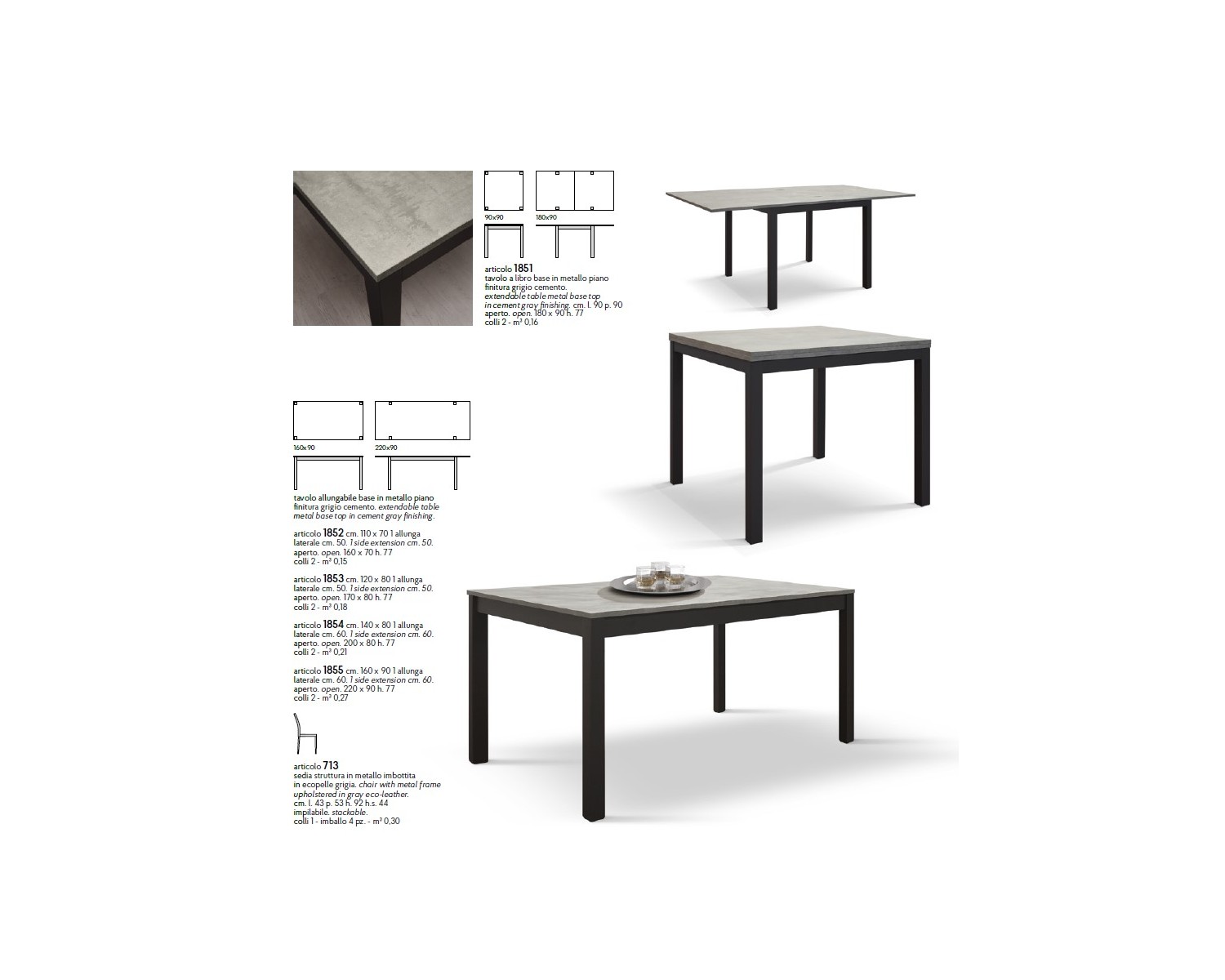 Tavolo a libro 90x90 base metallo piano finitura grigio cemento