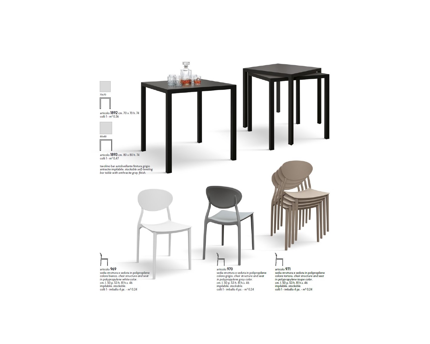 Tavolino bar autolivellante 80x80 finitura antracite