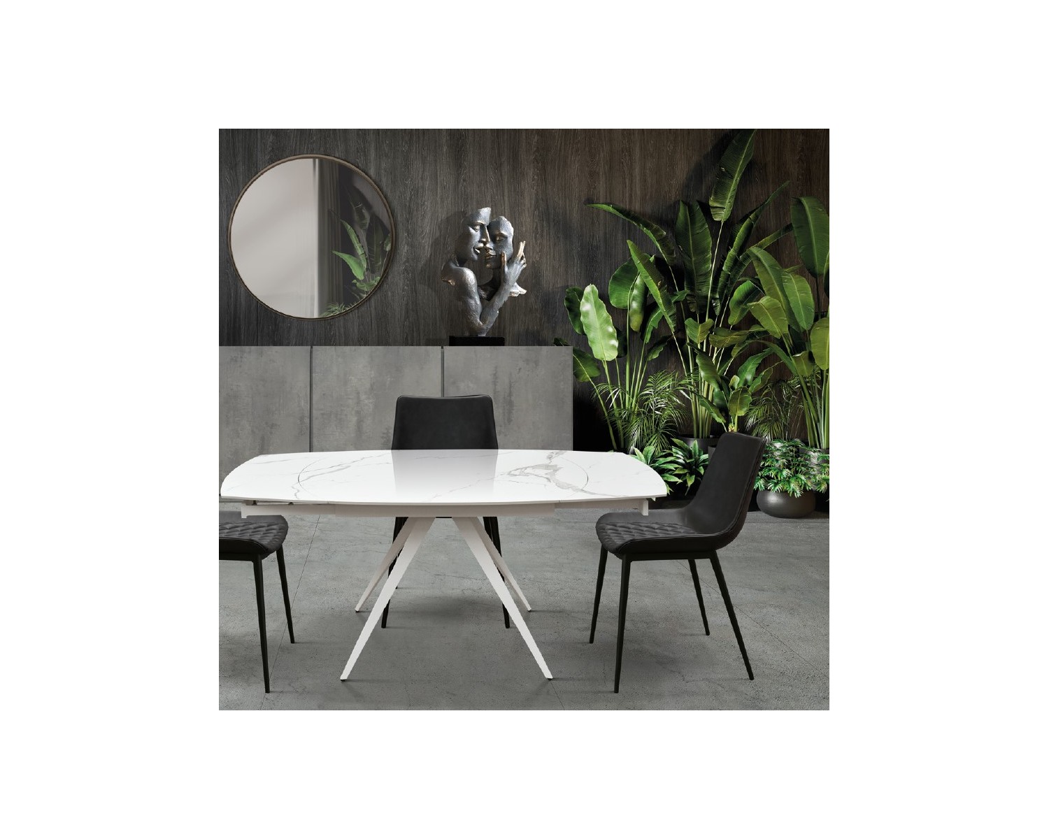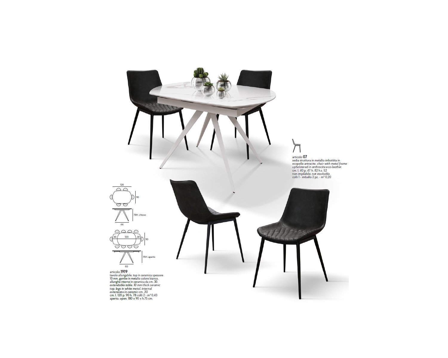 Tavolo allungabile rotante 120x90 con 2 all. cm. 30 base metallo piano ceramica