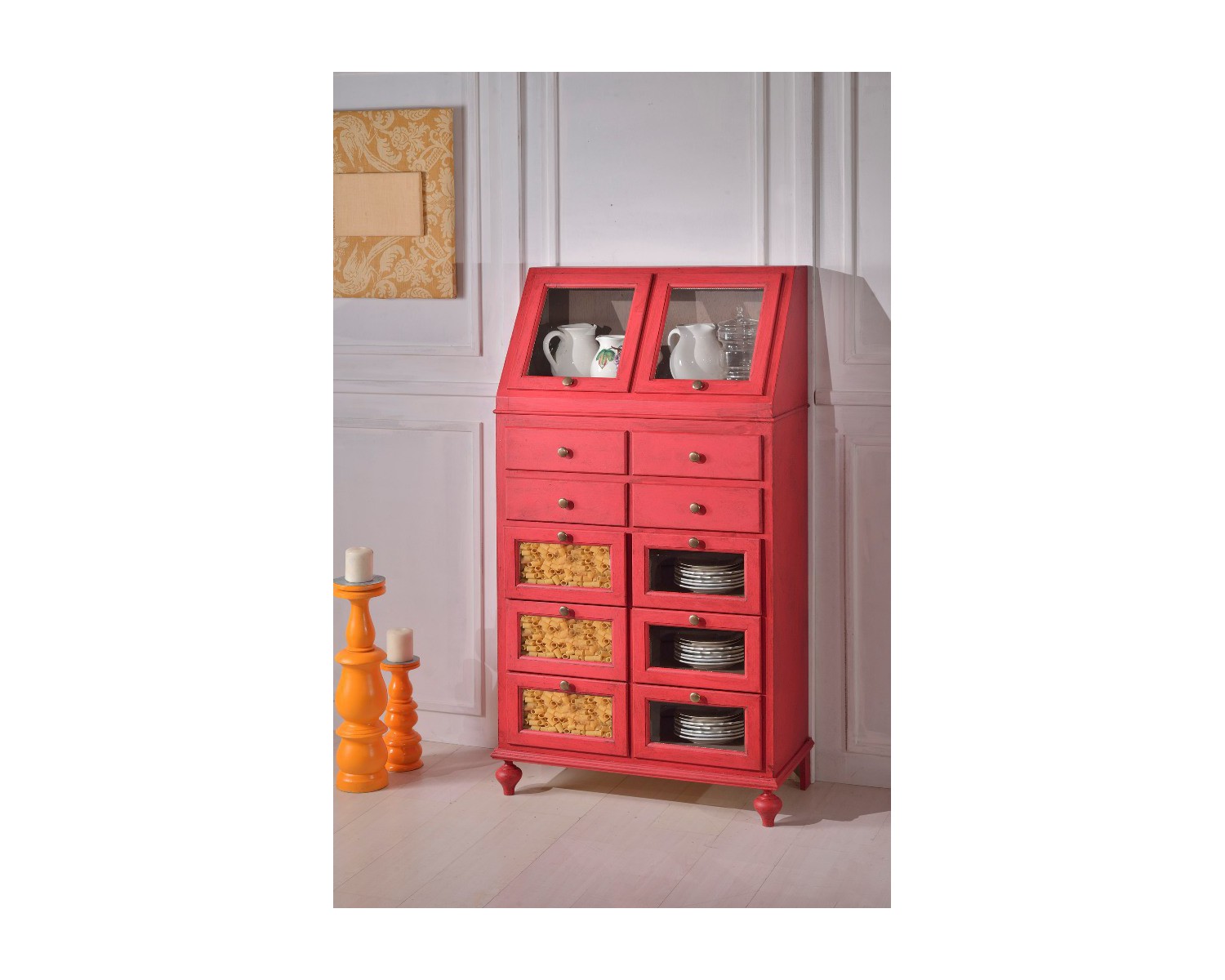 Möbel aus Massiv Farbe CERATO Altholz - Made in Italien - Venetien handwerkliche Produkt - Produktionszeit 25 Tage - Herstellung von verschiedenen Farben: gelb, taupe, rot, grün, Lavendel und taubenblau - orange und rot alt - in Bildern ALTE RED können zweifarbige oder monocole produzieren. Abmessungcm L 80 P 42 H 153 - wird komplett zusammengebaut -