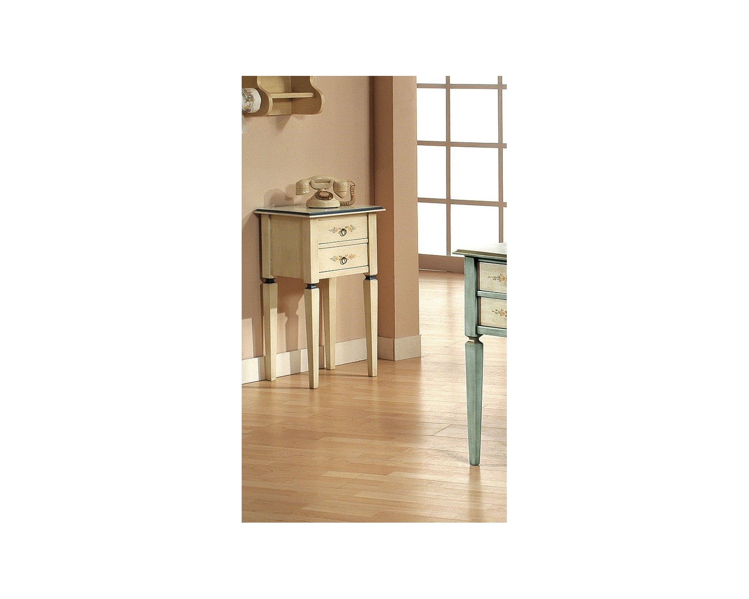 Stilvolle Trägertisch Telefon mit 2 Massivholz Schubladen und Agglomerations Möglichkeit, verschiedener Ausführungen: blau zweifarbig, zweifarbig gelb, Elfenbein Fäden azzurro.cassetti verziert mit handgemachten venezianischen Produktion floreali.MÖBEL Gründe Lieferung in ganz Italien Zeiten von 20/25 Tagen Liefer Unglaublichen Preis !!! DIMENSIONIL 44 P 35 H 77