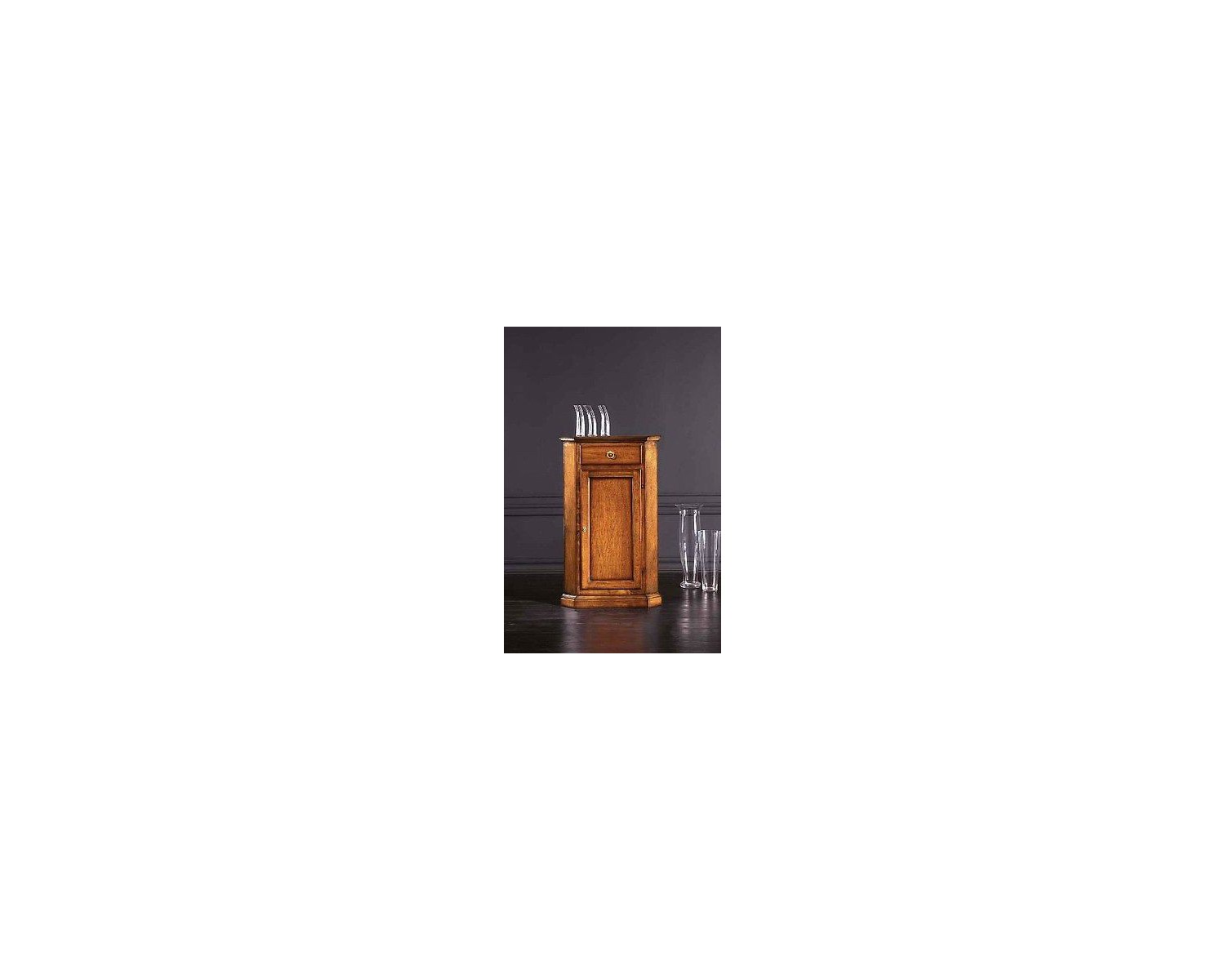 Schöner Eckschrank mit 1 Schublade und 1 Tür aus Massivholz und Spanplatten, Farbe rustikalem Nussbaum, Venetian finitire ausgezeichneter Qualität, Lieferzeit 15/20 Tage in ganz Italien Versand MASSE L 54 P 54 H 130