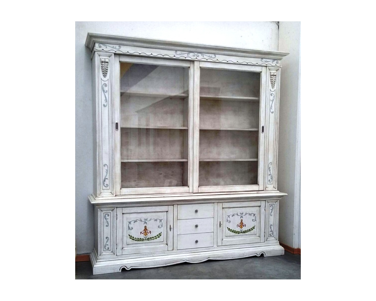 BIBLIOTHEK HOLZ SCHIEBETUEREN 3 DRAWERS 2 HOLZ L 212 H 220 P 45 Weiß Antike von Hand so PHOTO DEKORIERTE PRODUCT MADE IN ITALY