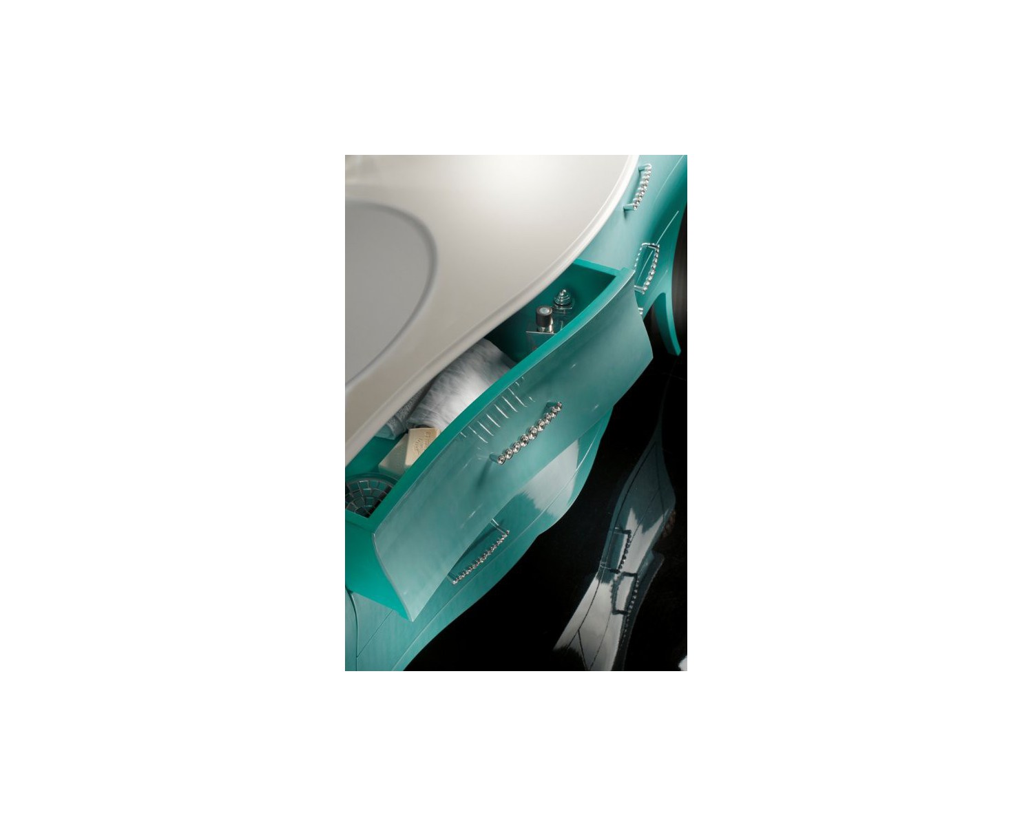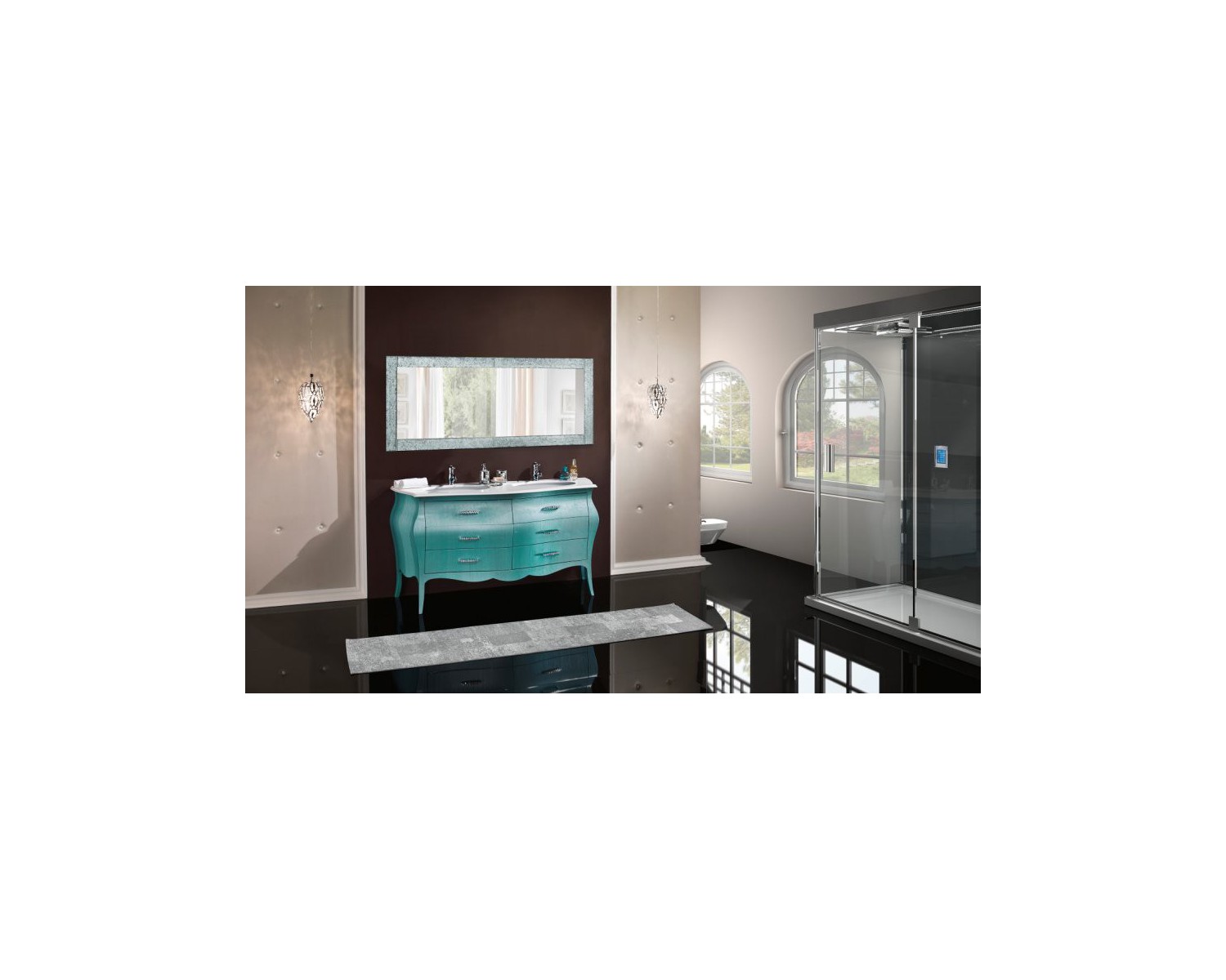 Elegant BATHROOM FURNITURE PAINTED WOOD GREEN TURQUOISE WATER AS PHOTO This price includes basic plan + - MINERLMARMO TWO BATHS no mirror (including swarovski handles) Upon request for sale MIRROR OF GRIT GLASS COLOR ICE EURO 294 AVAILABLE IN VARIOUS COLORS - PRODUCTION VENETIAN CRAFTS (20 DAYS PRODUCTION TIMES) COMPOSITION EXCLUDED TAP TO DIMENSIONS Art. 3247 / A furniture BATHROOM BOMBATO 6 C. L. 162 - P. 58 - 83 H. TO Art. 3248 / A Mineralmarmo 2 TANKS L. 160 - P. 58 - H. 2 TO Art. 3269 / A MIRROR IN GLASS GRIT COLOR ICE L. 180 - P. 3 - 70 H.