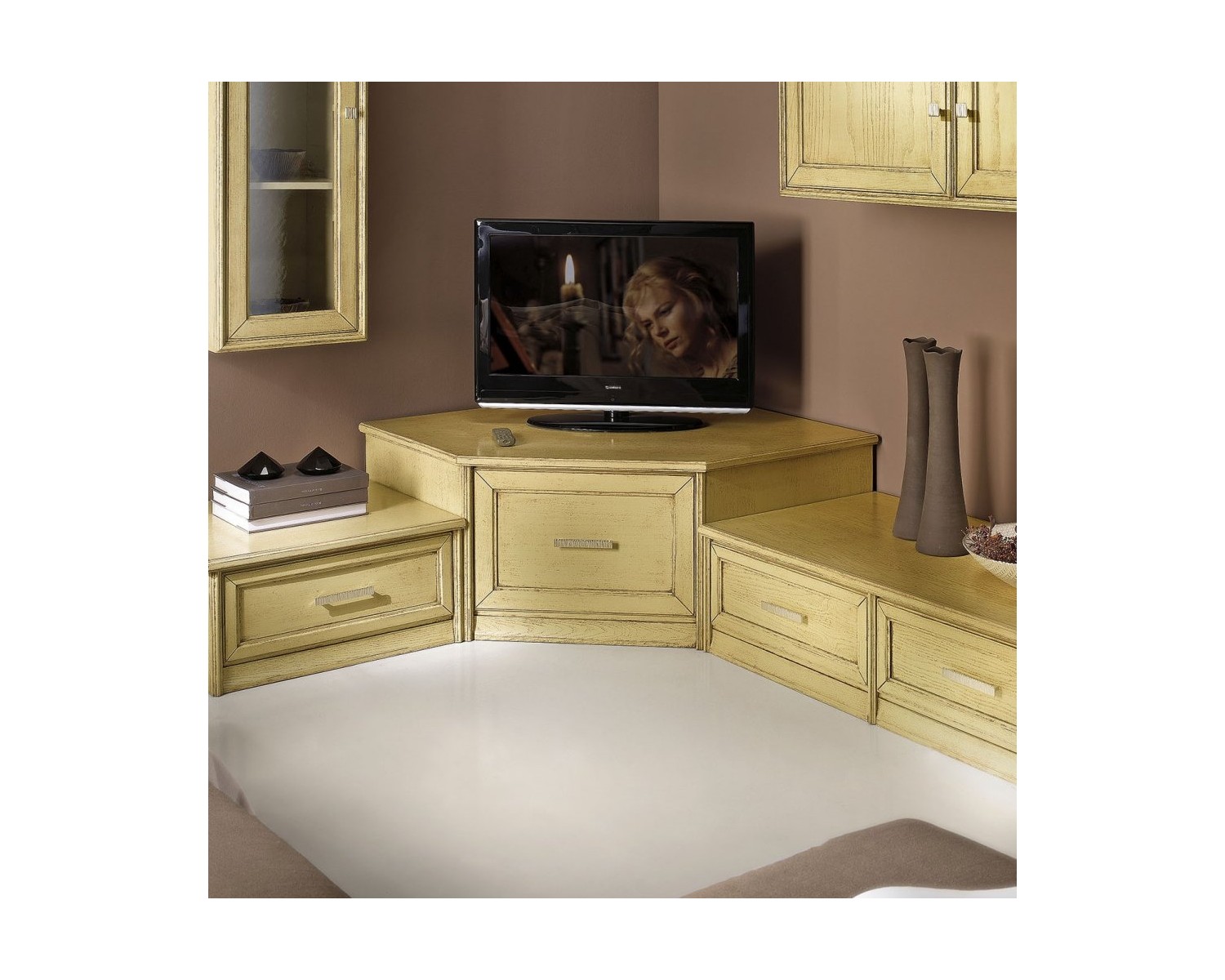 PORTA TV AD ANGOLO LEGNO MASSELLO 104X104 P115 H 48