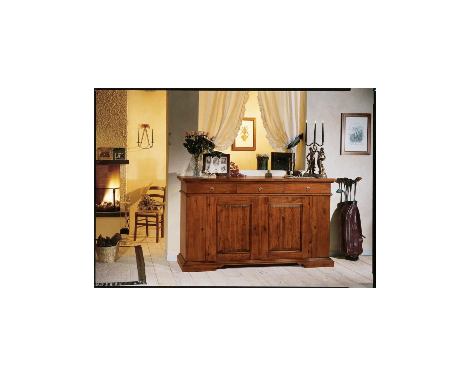 Elegant solid wood dresser and agglomeration rustic walnut color 2 large doors and 3 drawers with central advanced body good quality high quality handmade Venetian production, delivery time 20/20 days Shipping throughout Italy DIMENSIONS L 201 P 52 H 114