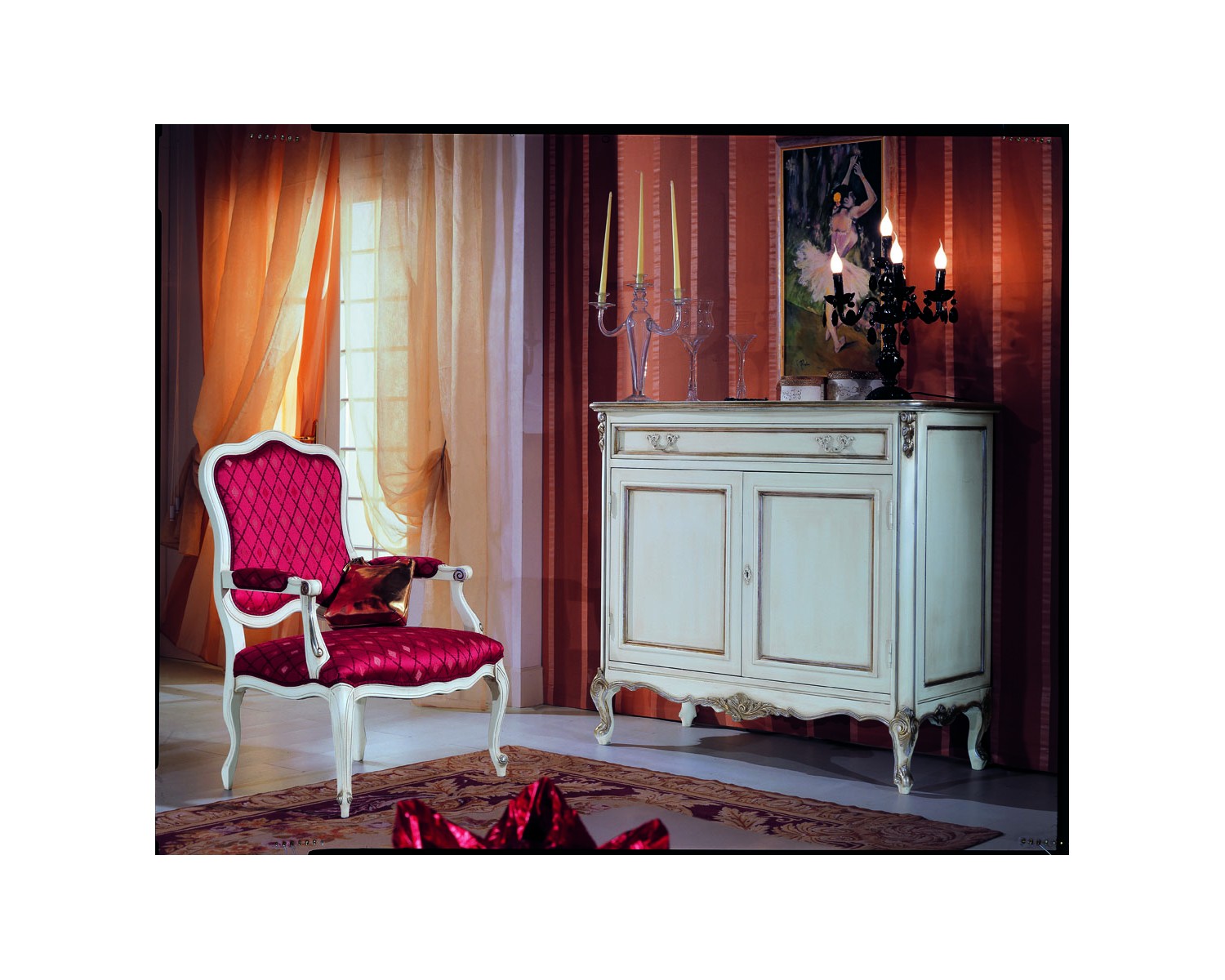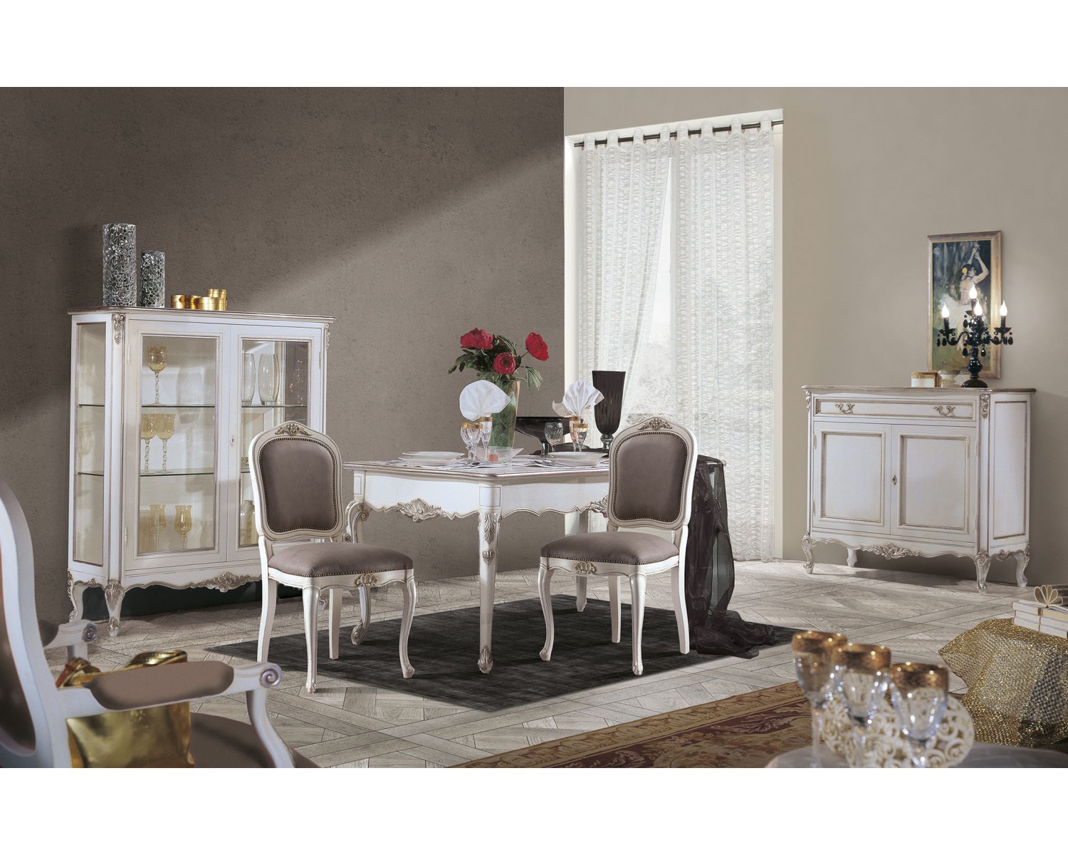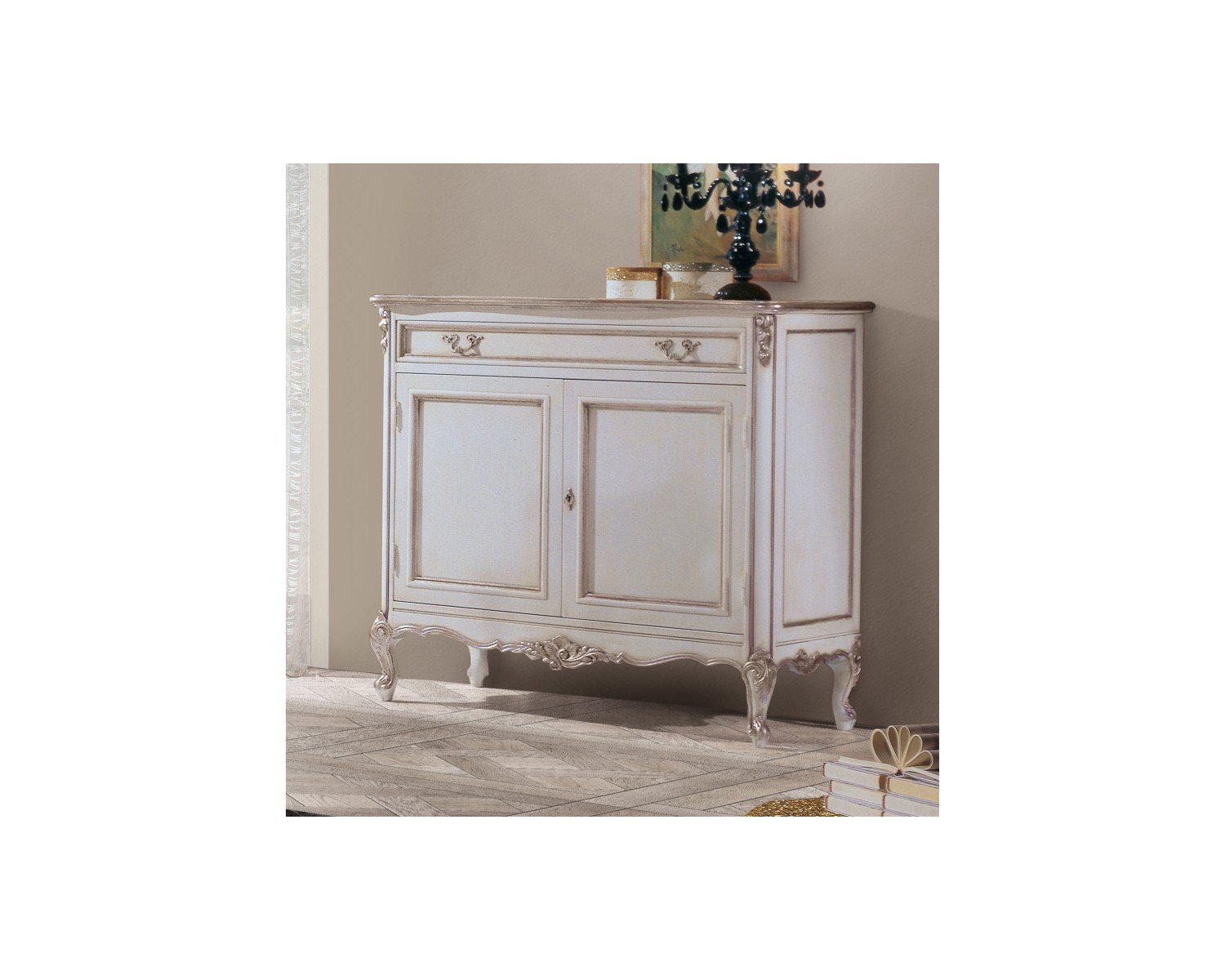 Elegant style dresser LOUIS XVI lacquered antiqued white with leaf carvings argento.Great Venetian quality, craftsmanship, delivery time 15/20 days Shipping throughout Italy CAN PRODUCE EVEN GOLDEN LEAF DIMENSIONS L 130 P 60 H 107