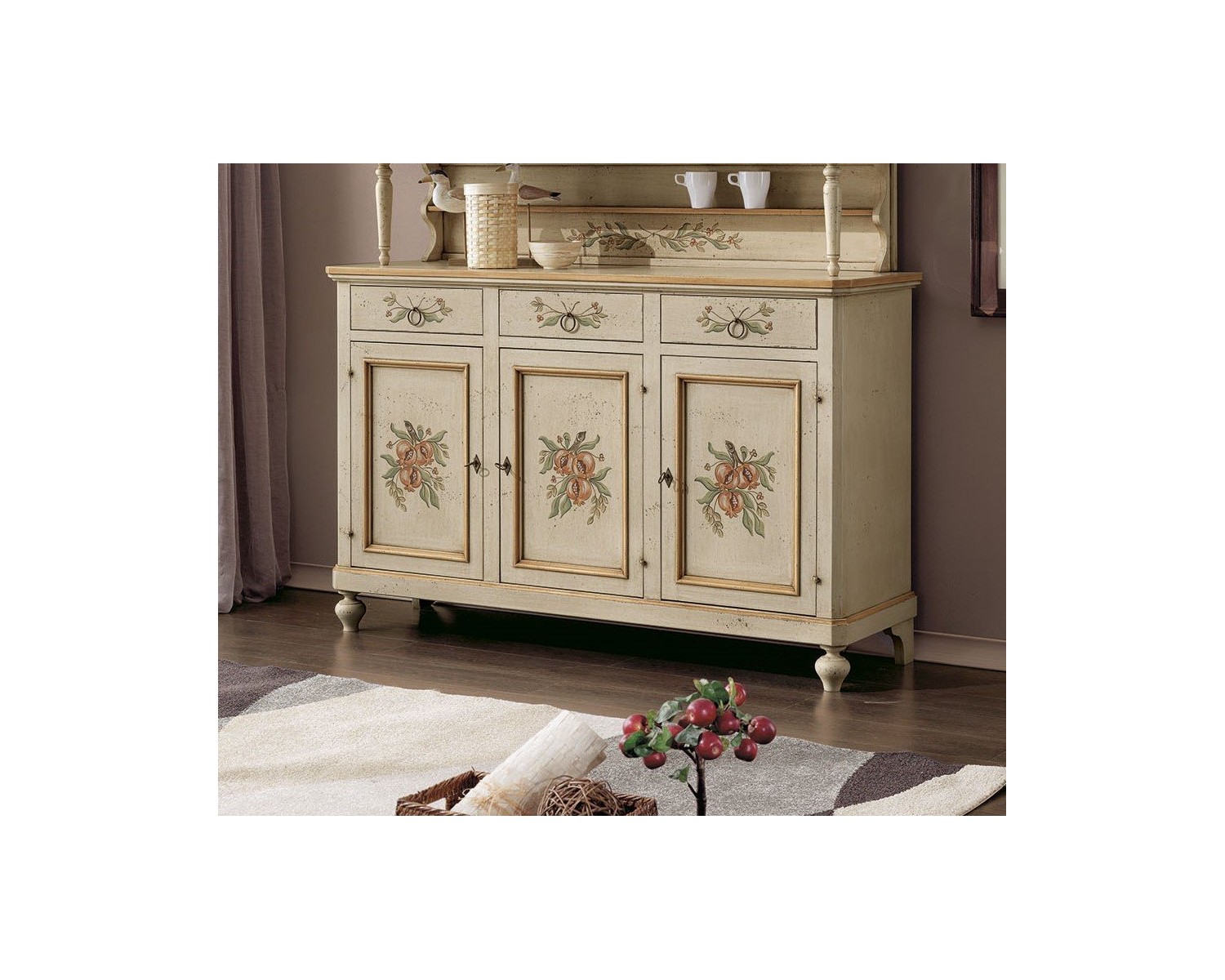 Beautiful solid wood dresser and agglomerate with 3 doors and 3 drawers antique ivory finish with finely decorated furniture crafted Venetian production center panels Shipping throughout Italy delivery time 20-25 days DIMENSIONS L 160 P 50 102 h