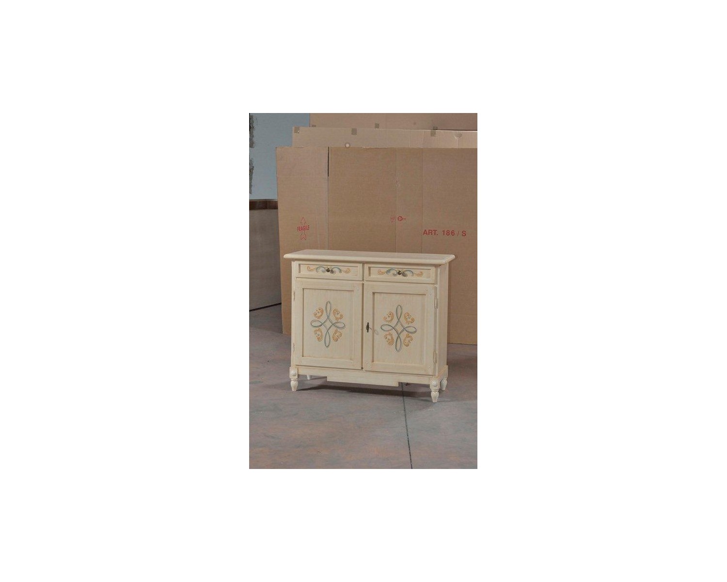 CABINET 2 DOOR 2 DRAWER WOOD DECORATED IVORY brushed - codluis 1034