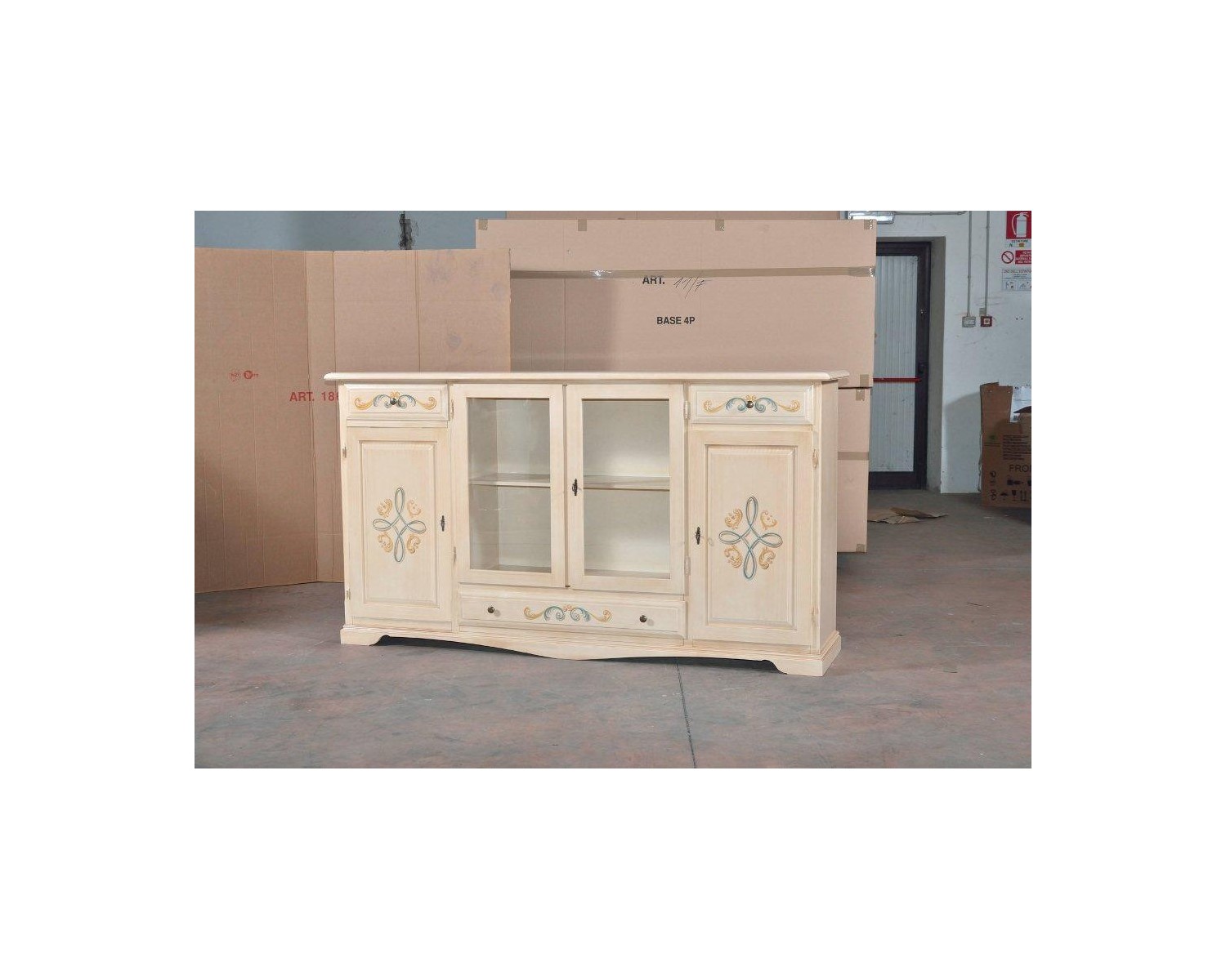 DECORATED WINDOW DRESSER cupboard IVORY PENNELLATODimensione: 205X49XH113PRODOTTO: solid wood and chipboard color finishing as excellent photo quality 'venetian handmade Delivery throughout Italy production time 20 days