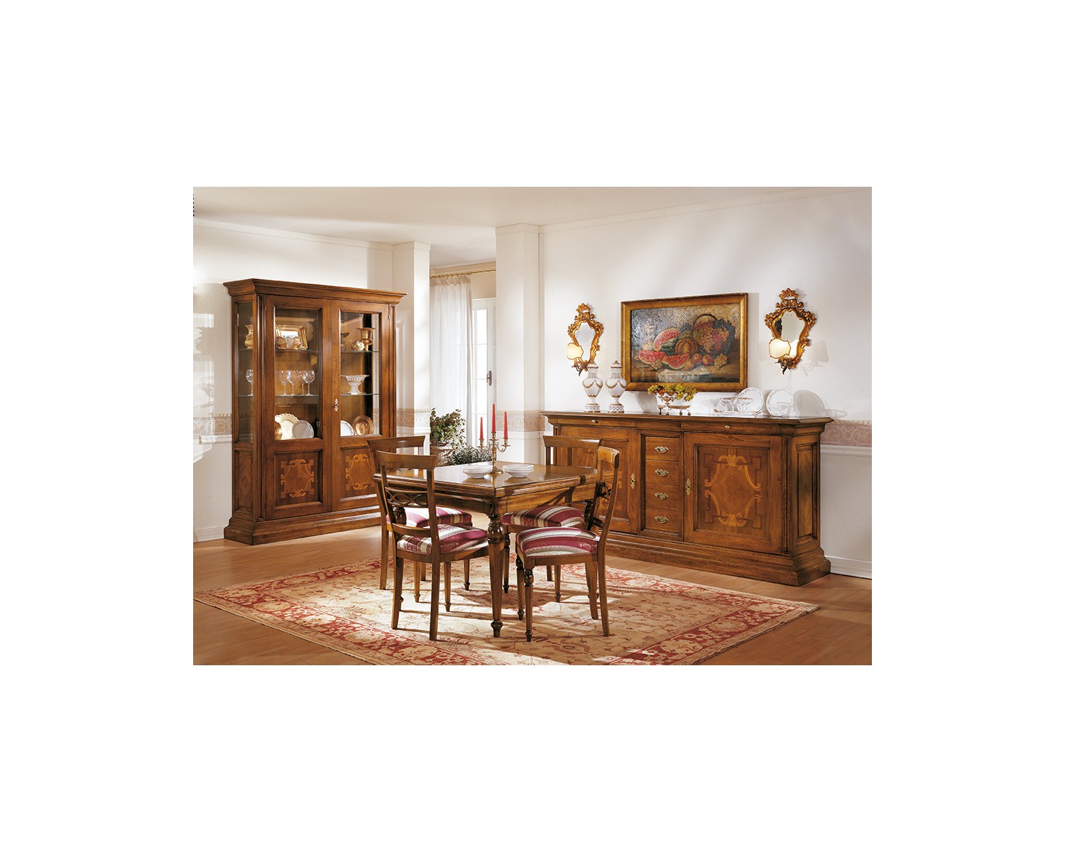 CREDENZA STYLE BASSANO INTARSIATA SOLID WOOD L 227 P 55 H 110
