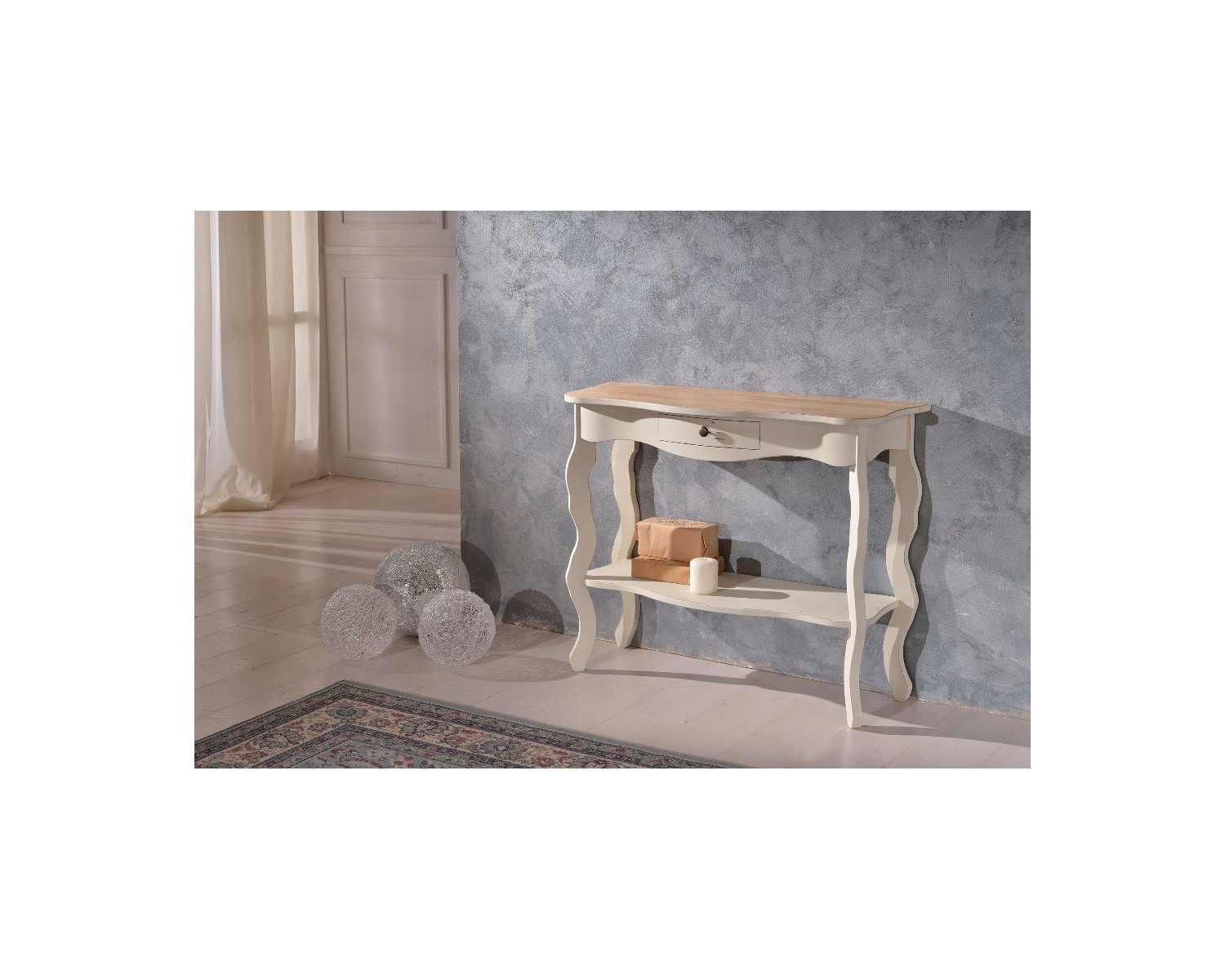 furniture in solid wood color CERATO - interior color walnut wheat - made in Italy - Venetian artisan product - production time 25 days - Producing various colors: yellow, taupe, red, green, lavender and powder blue - orange and red antique - antique gray sumer in photo IVORY BICOLORE PLAN WALNUT WHEAT - CAN PRODUCE MONOCOLORE O BICOLORE DIMENSION CM L 104 P 35 H 85 - is delivered completely assembled -