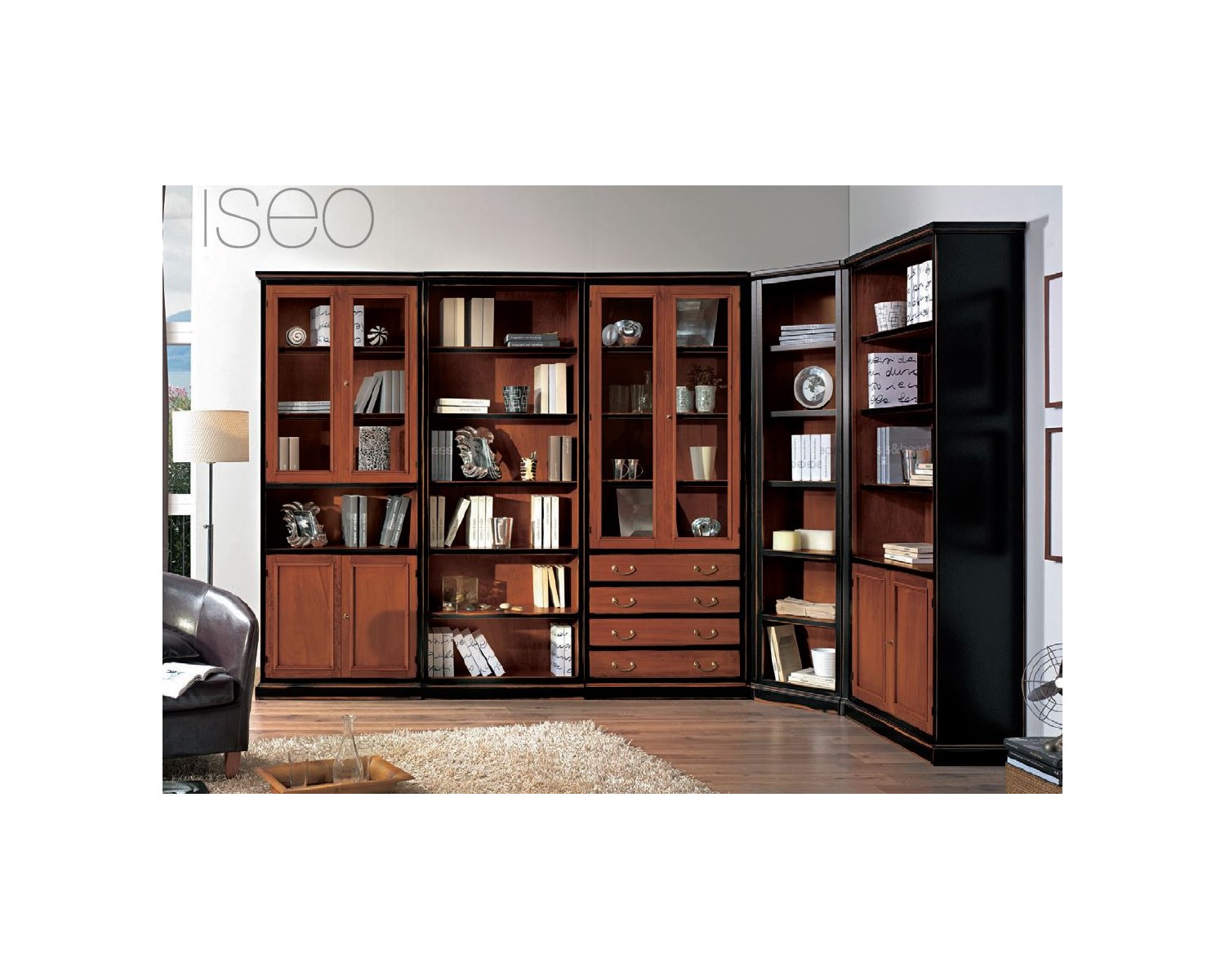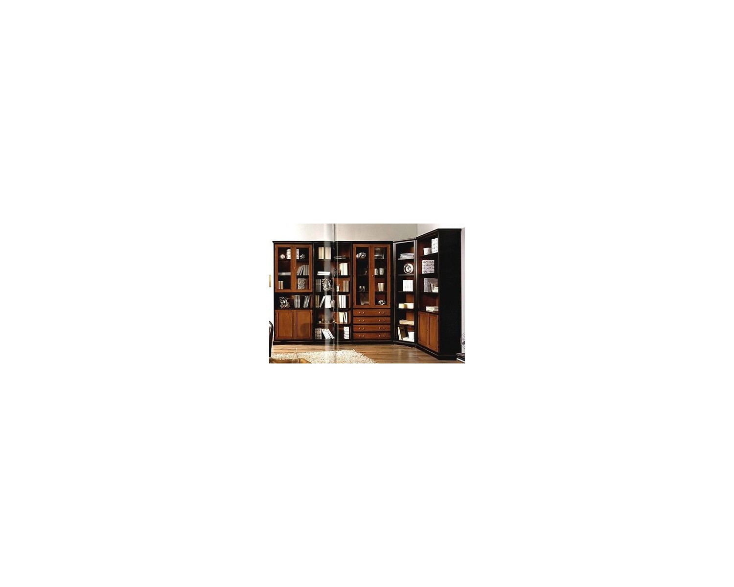 Beautiful modular bookcase in solid wood modular modular two-tone cherry and black lacquer antique finish, excellent Venetian artisan quality delivery 25 days, shipping throughout Italy DIMENSIONS L 333 P 163 H 225