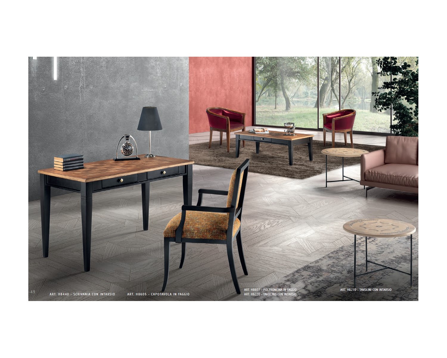 Scrittoio intarsiato con 2 cassetti L.130 P.70 H.76,5