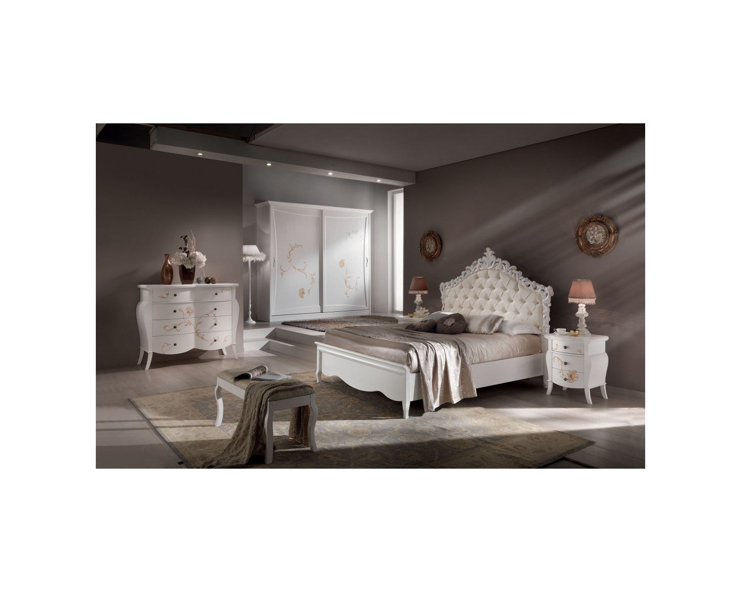 CAMERA COMPLETA LEGNO MASSELLO CON INTAGLIO