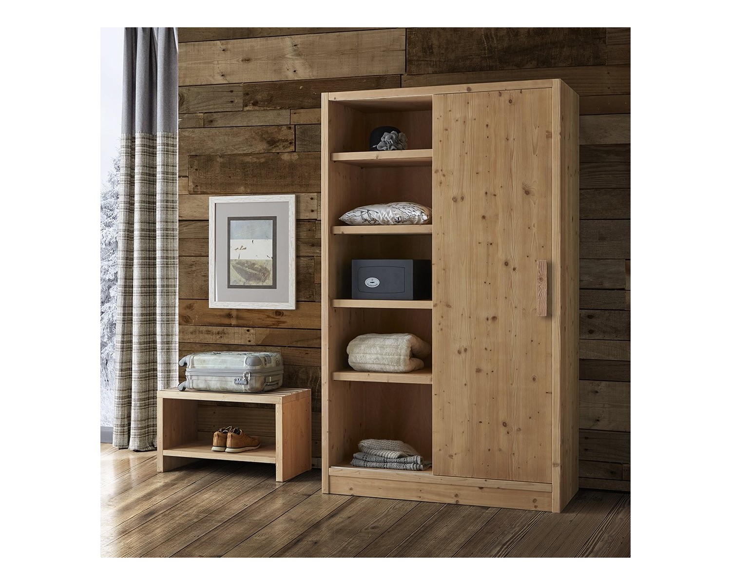 Armadio 1 anta scorrevole vano a giorno con 4 ripiani. Smontabile. Cod. 3309/A Misure: Larghezza Cm. 125 Profondit Cm. 55 Altezza Cm. 220 Materiali: legno massello di Abete. Porta in listellare di Abete. Schienale: compensato.