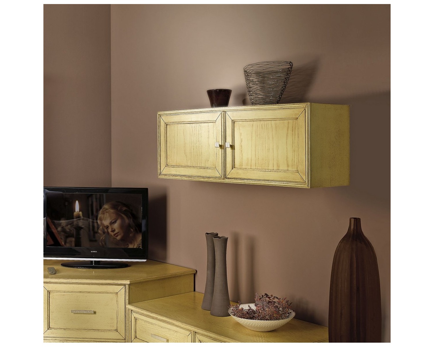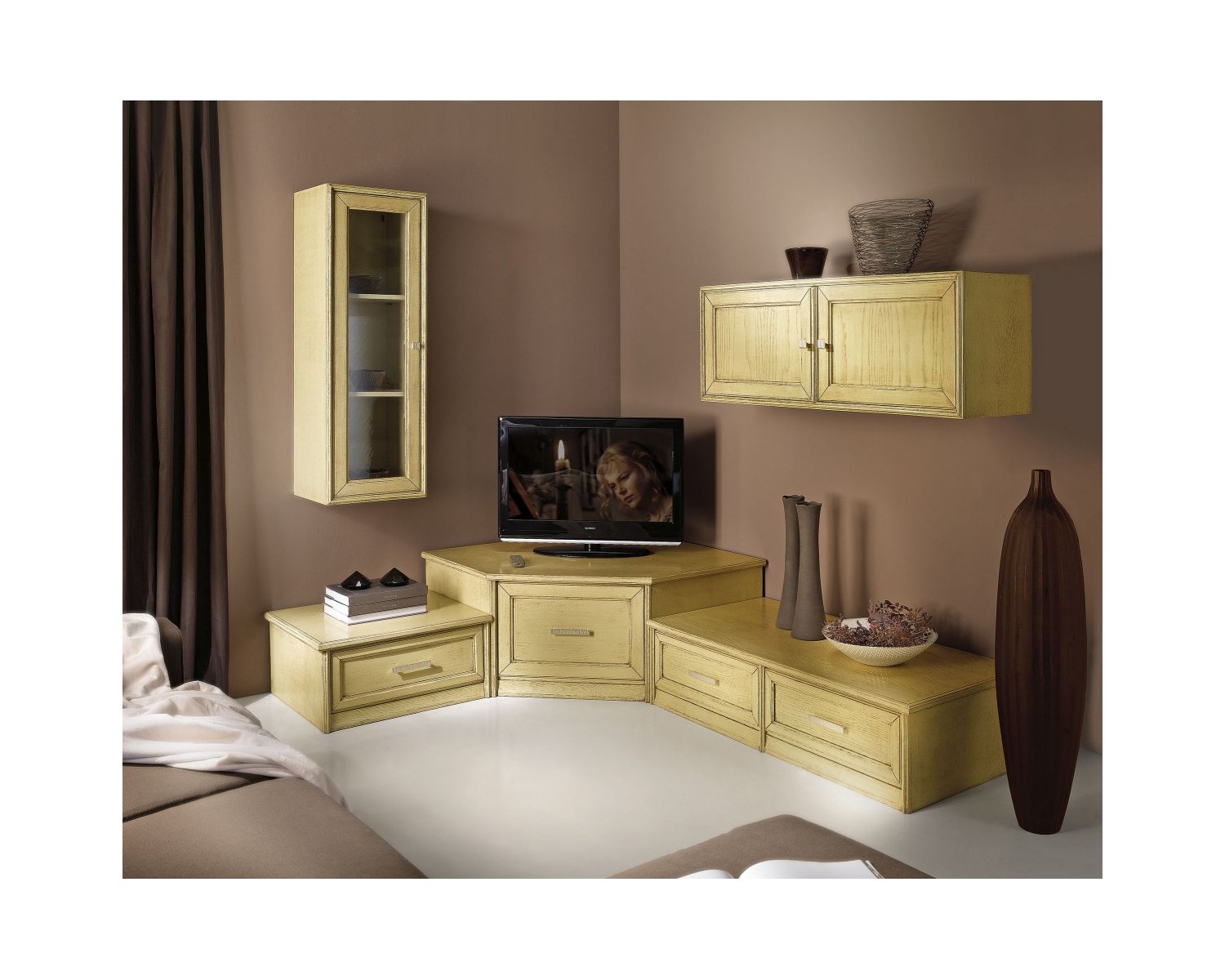 PORTA TV AD ANGOLO LEGNO MASSELLO 104X104 P115 H 48