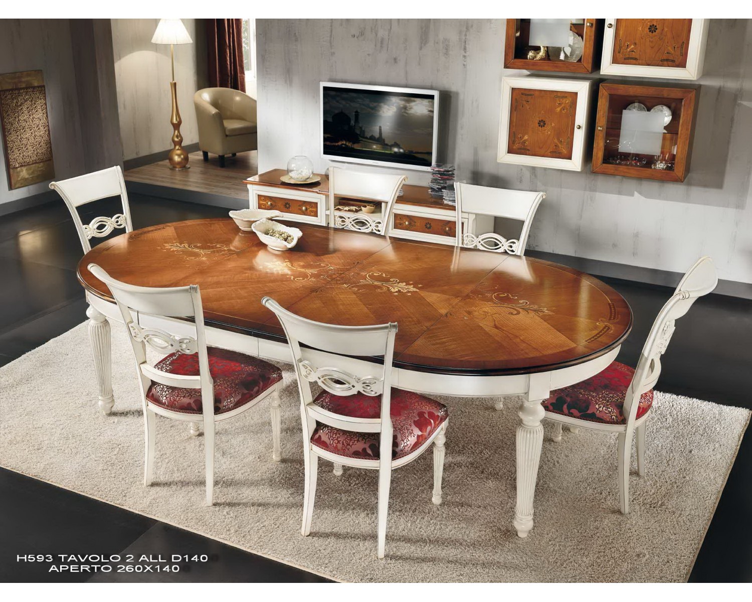 TAVOLO ROTONDO DIAM. 140 CON 2 ALL. DA 60 CM INTARSIO VERONA