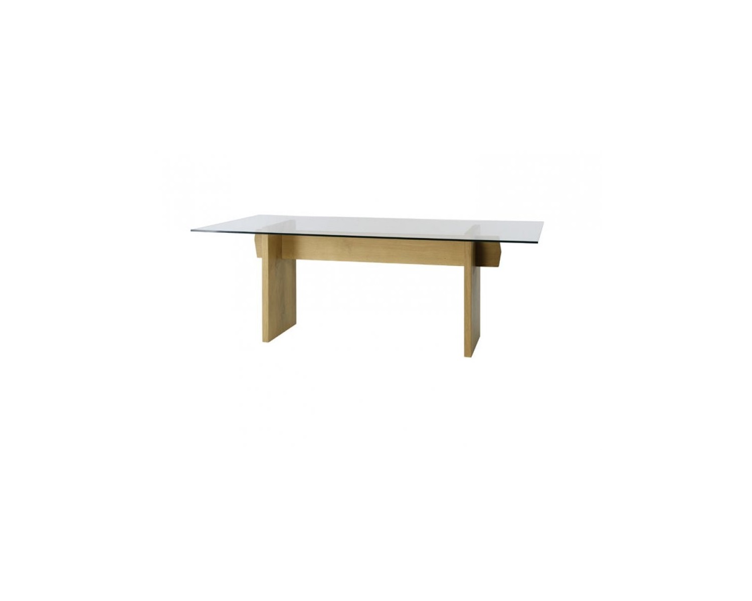 Tavolo rovere, piano cristallo temperato L.220 H.77 P.90